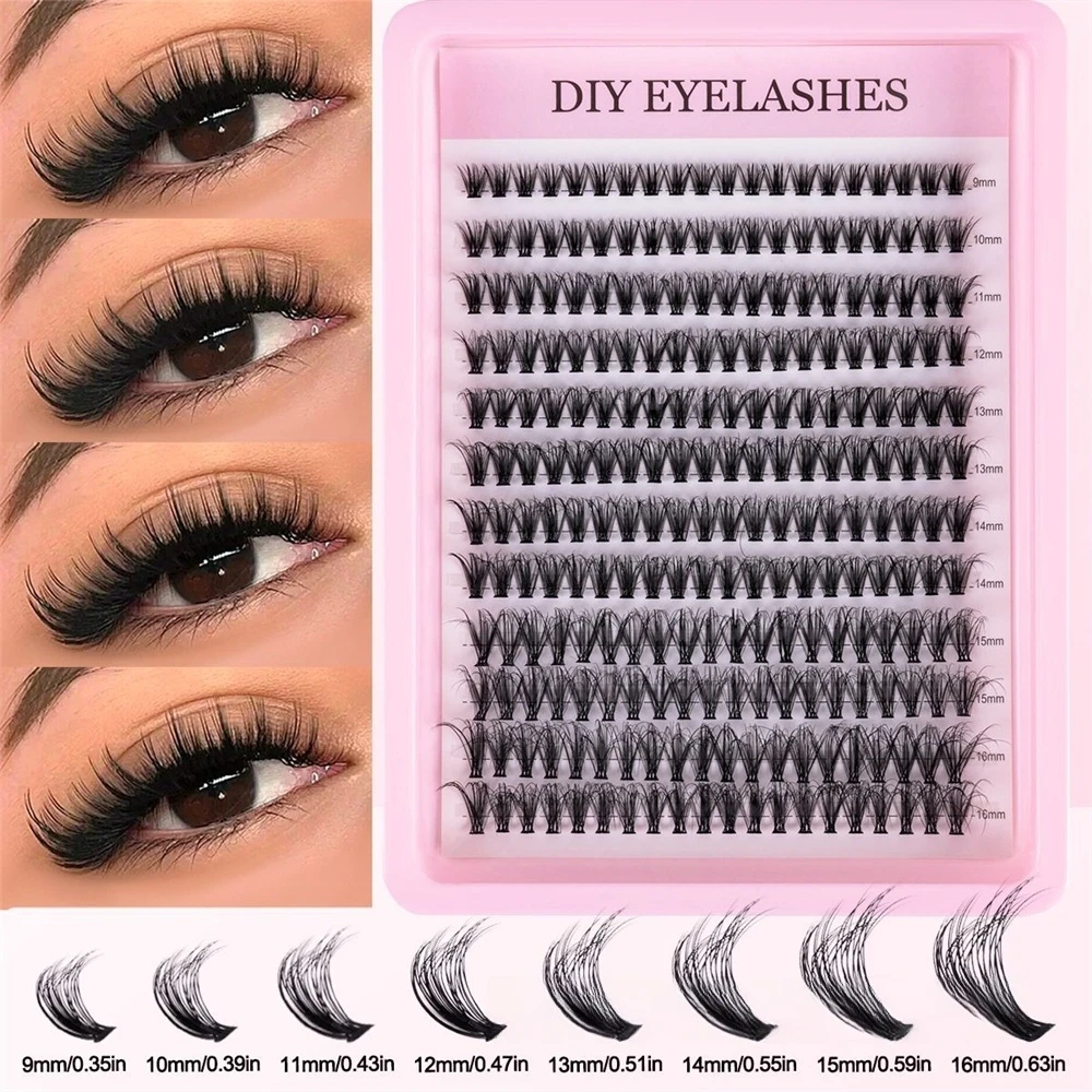 Cluster Lashes, 240pcs 40D 9-16mm Mixed Lengths, Ultra-Natural Look Thin Ultra-Soft Ultra-Light, Reusable for Beginners