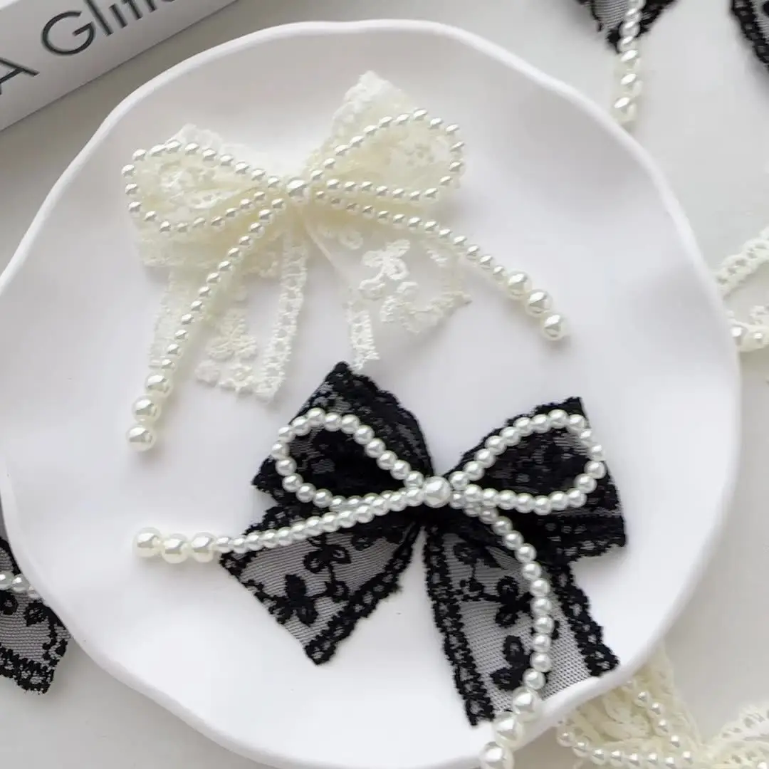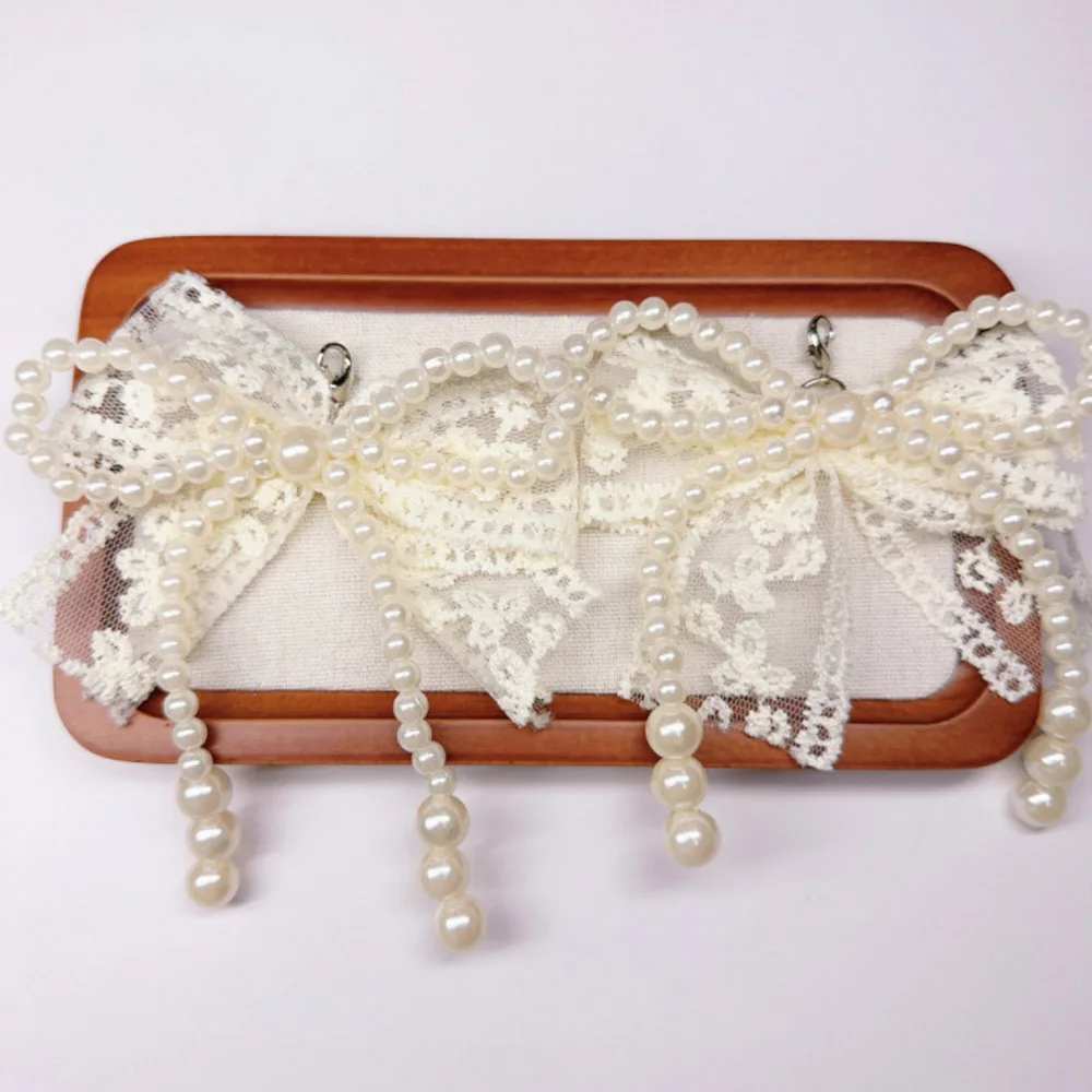 2Pcs Set Fashion Lace Pearl Bow Shoe Charms Accessories DIY Shoe Decoration Pins Shoe Buckle Lace Charms for Sneakers Decorative
