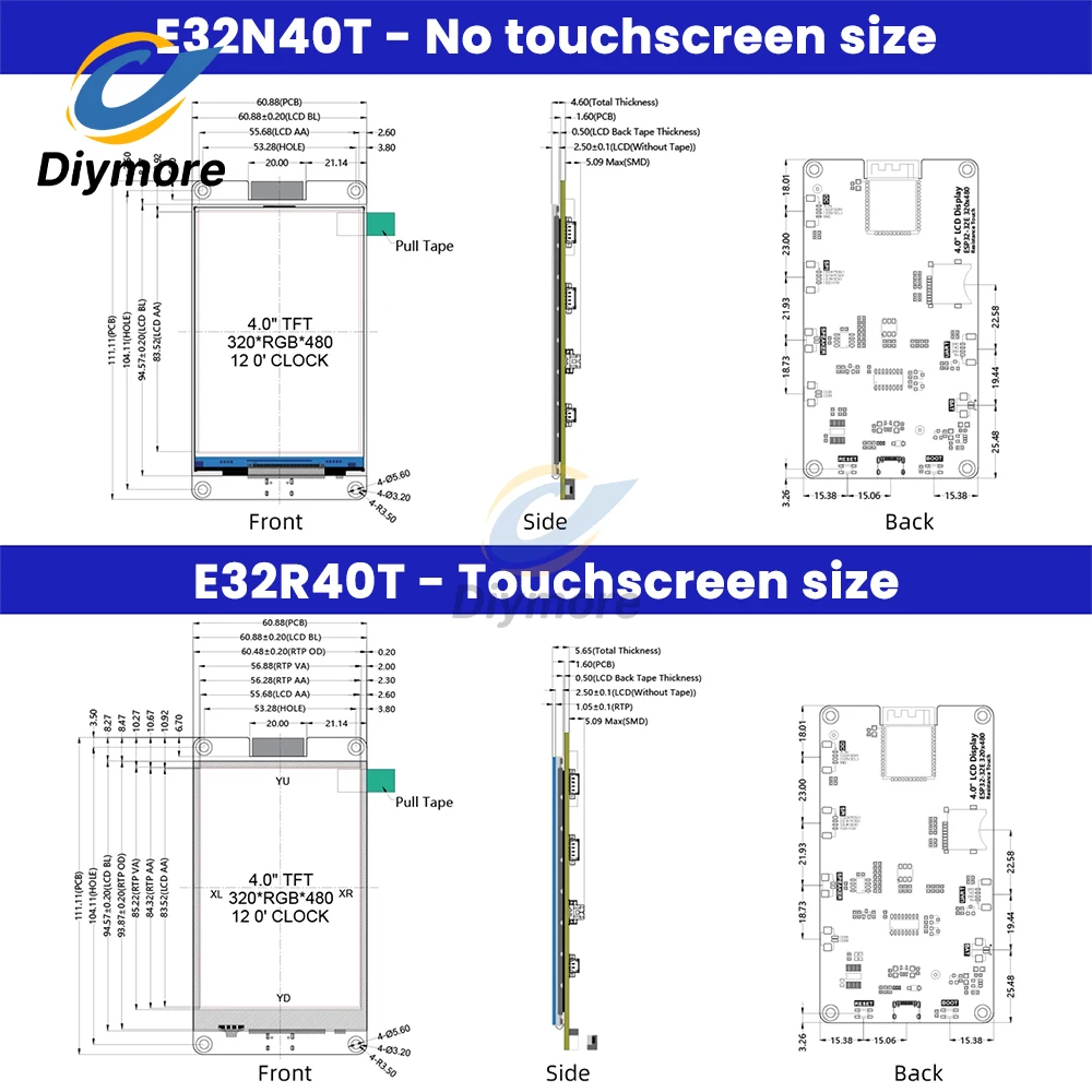 4.0-Inch Touch Screen ESP32 WiFi Bluetooth Development Board 320x480 Resolution ST7789 Driver ESP32-32E Module Type-C