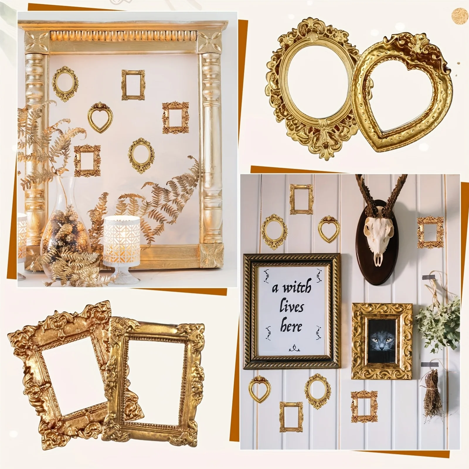 12pcs Vintage Mini Picture Frames Elegant Golden Tone Baroque Resin Wall Mounted Display Cases Wedding Christmas Home Decor