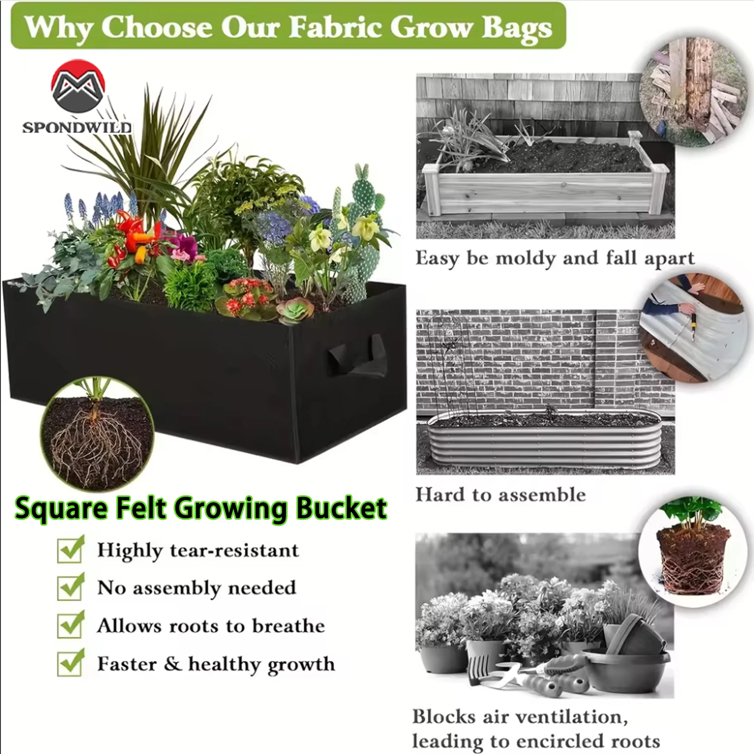 Breathable Square Planting Bag, Non-Woven Grow Bucket with Root Control Design, Space-Saving & Foldable for Versatile Gardening