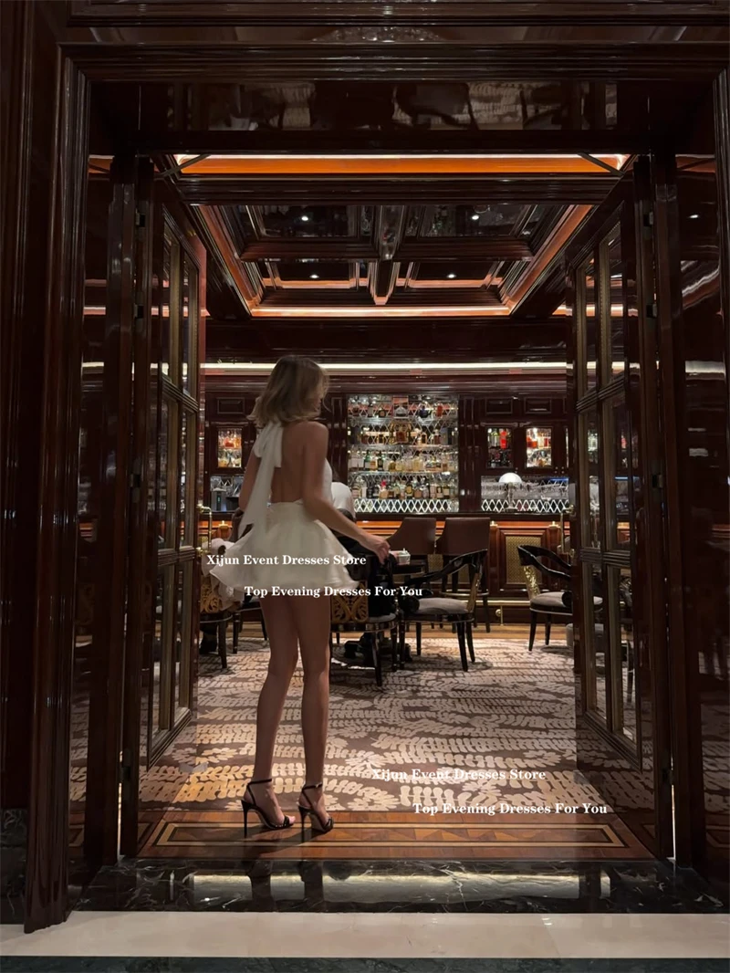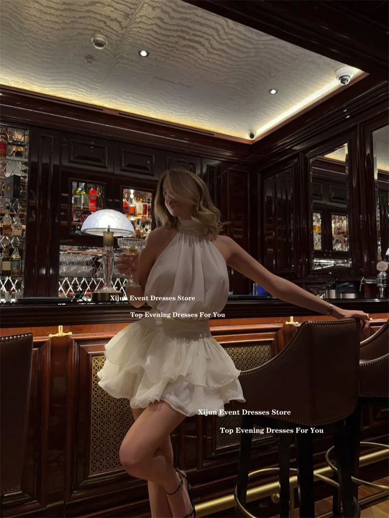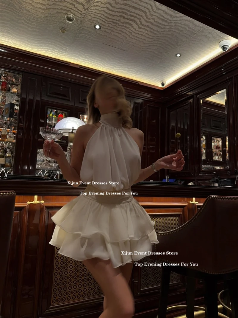Xijun Modern Tiered Short Evening Dresses Ivory Halter Sleeveless Cocktail Dresses Mini A-Line Birthday Party Gowns Customized