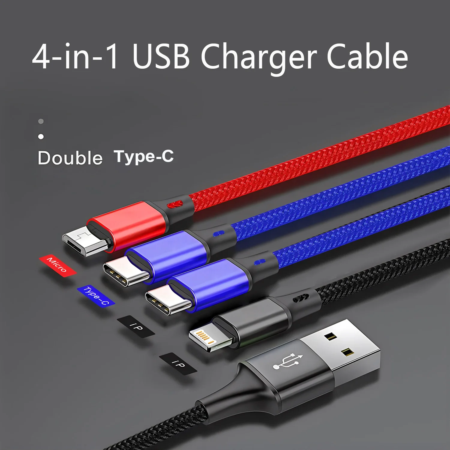 1.2m 4 In 1 USB Type C Fast Charging Cable For Iphone 15 14 Pro Max 3A Quick Charge Phone Data Line Cord For Xiaomi Huawe