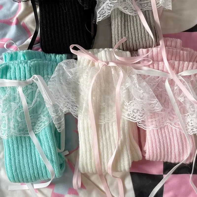 2026 New Woman Leg Warmers Autumn and Winter Ribbon Lolita Black Knee Warmers Long Socks JK Knitted Girl White Leg Warmers