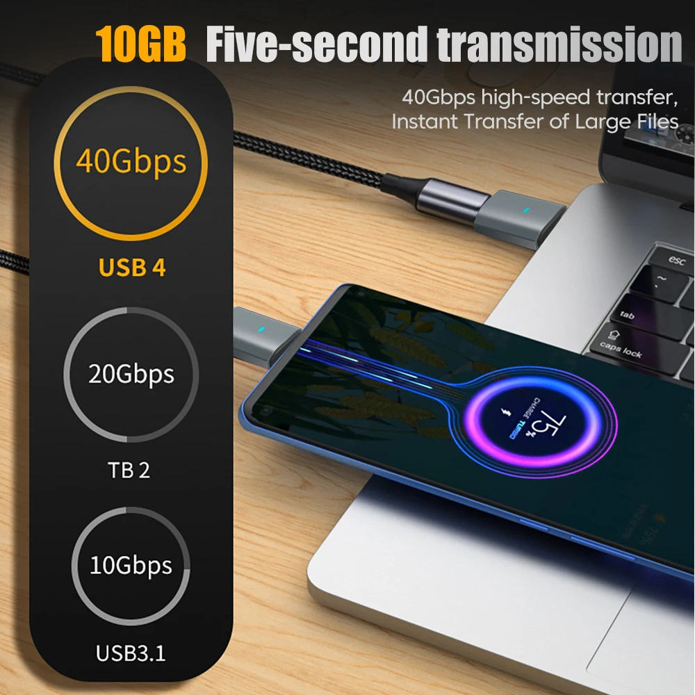 240W USB C to C Adapter 40Gbps 8K 60Hz 90 Degree Converter Type C Adapter for MacBook iPhone 15 16 17 Pro Tablet High Transfer