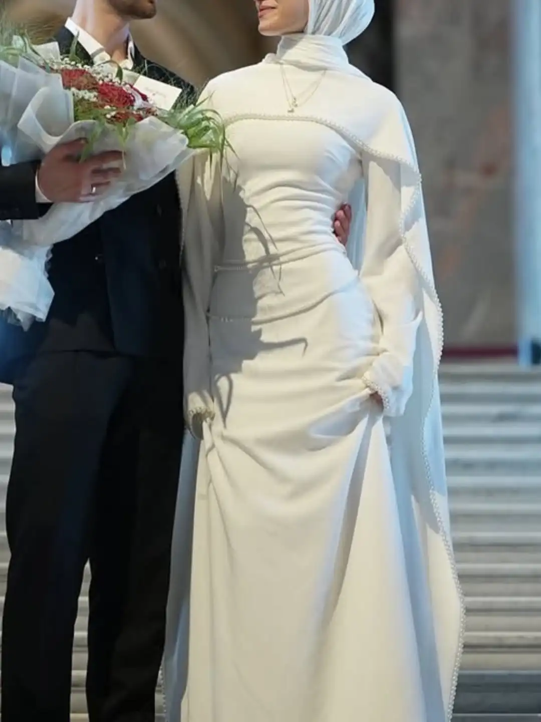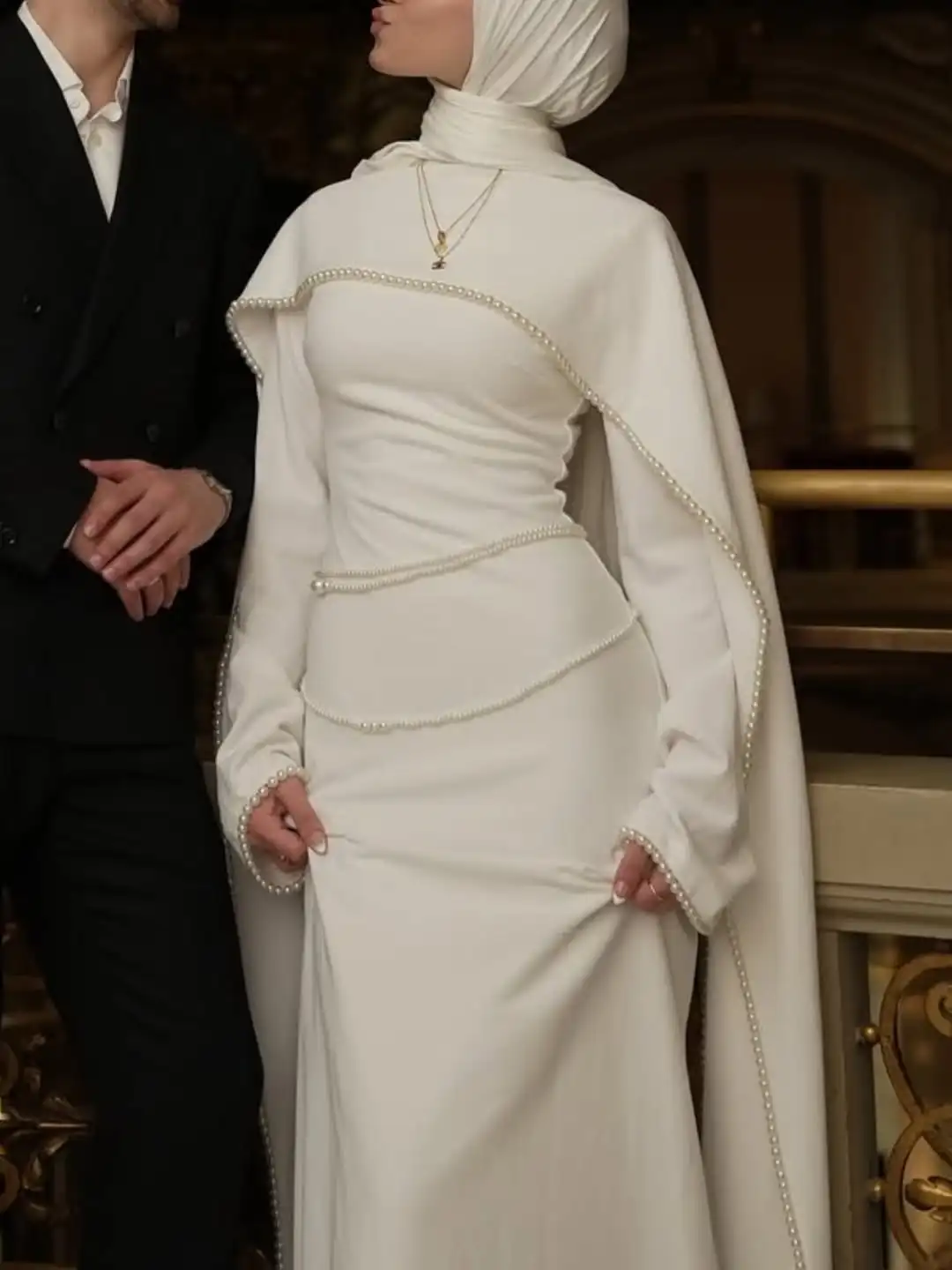 ALI shop - rezultati pretrage ... ... Xijun Ivory Crepe Pearls Prom Dresses Cape Full Sleeves Long Mermaid Wedding Dresses Formal Luxury Dubai Prom Gowns Customized ::: 2021 ::: :::