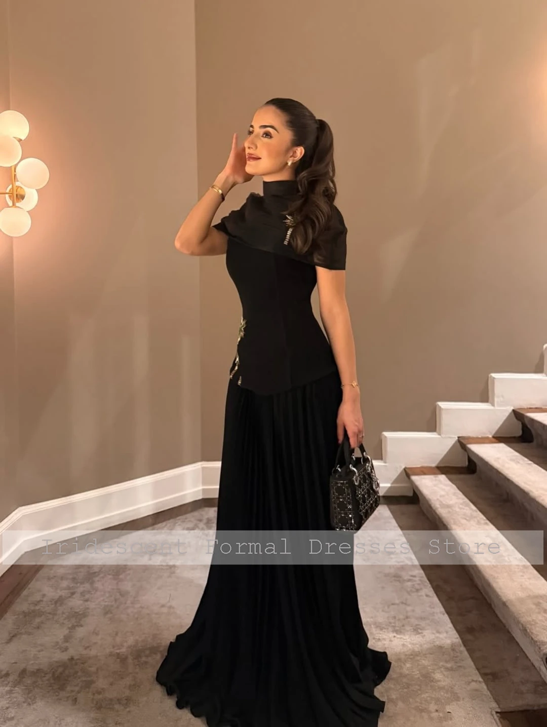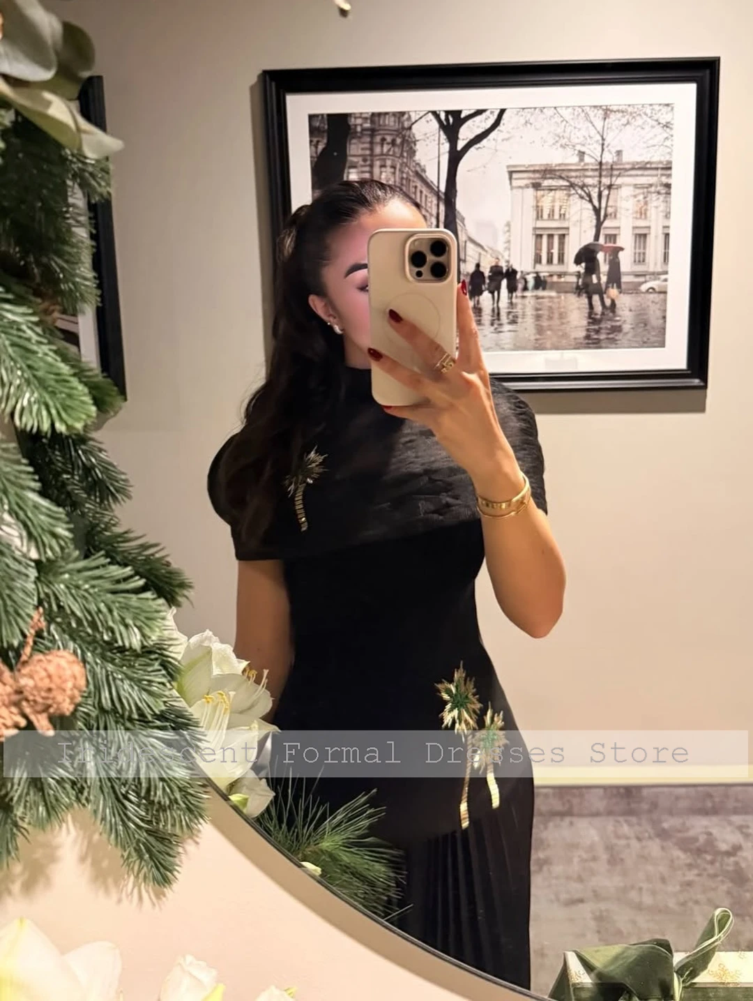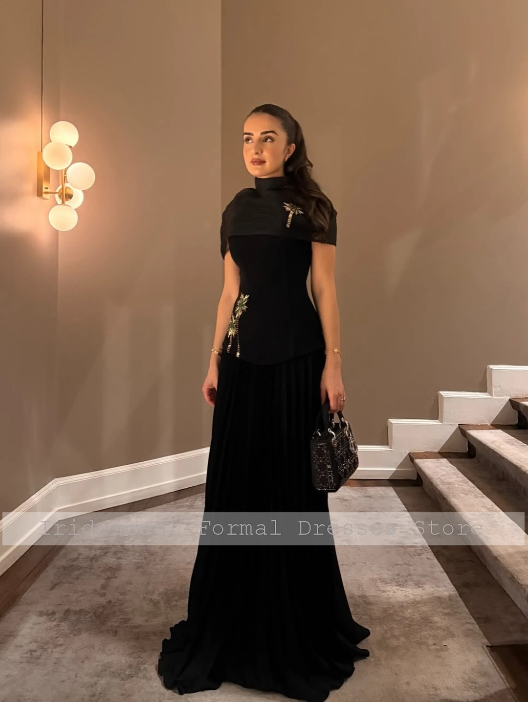 Customized Beaded Evening Dresses with Cap Sleeves A Line Luxury Party Dress for Women Modern Black Long Cocktail Gowns 2026