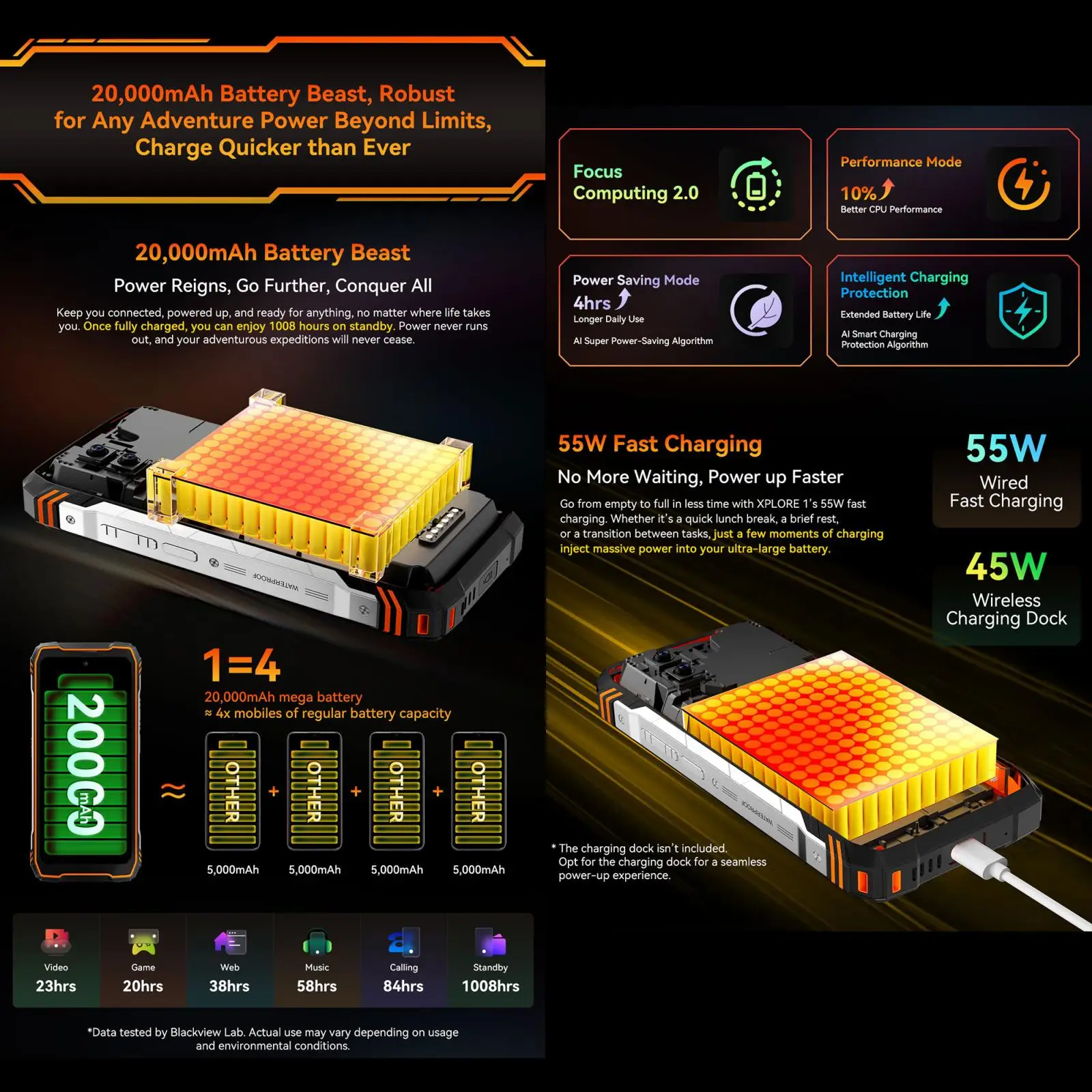 Blackview XPLORE 1 5G Rugged Smartphone 20000mAh Battery 55W 6.78'' 120Hz 12GB+256GB 64MP Camera Android 15 Dimensity 7050 NFC
