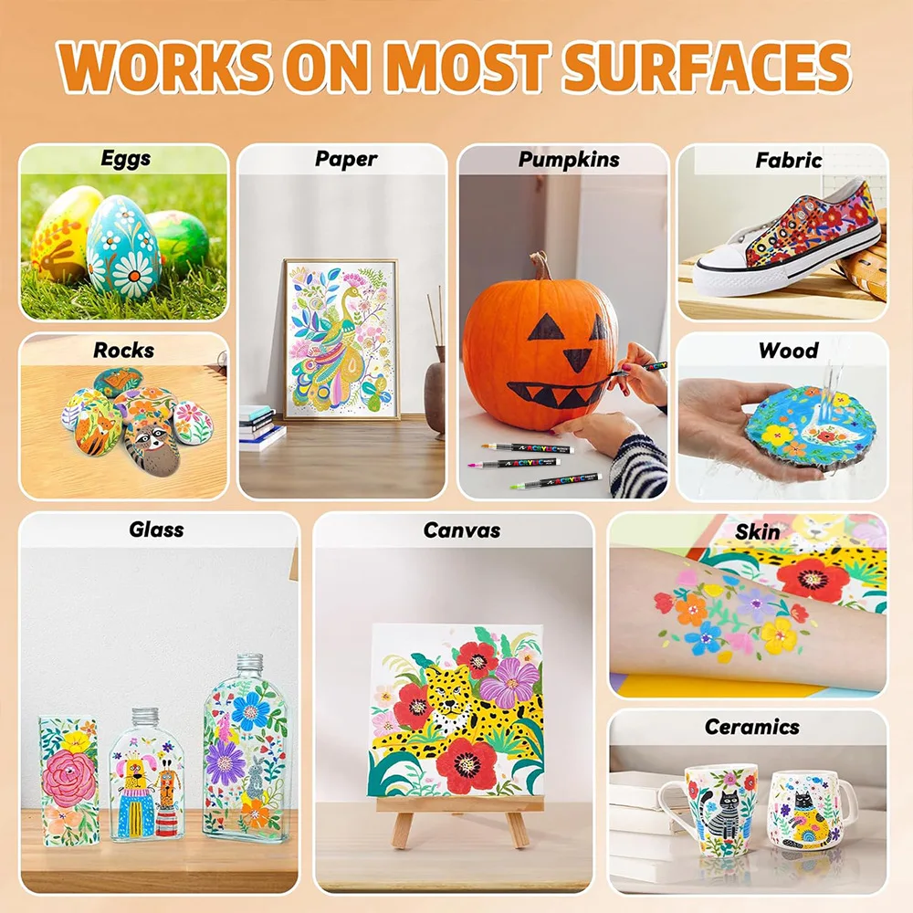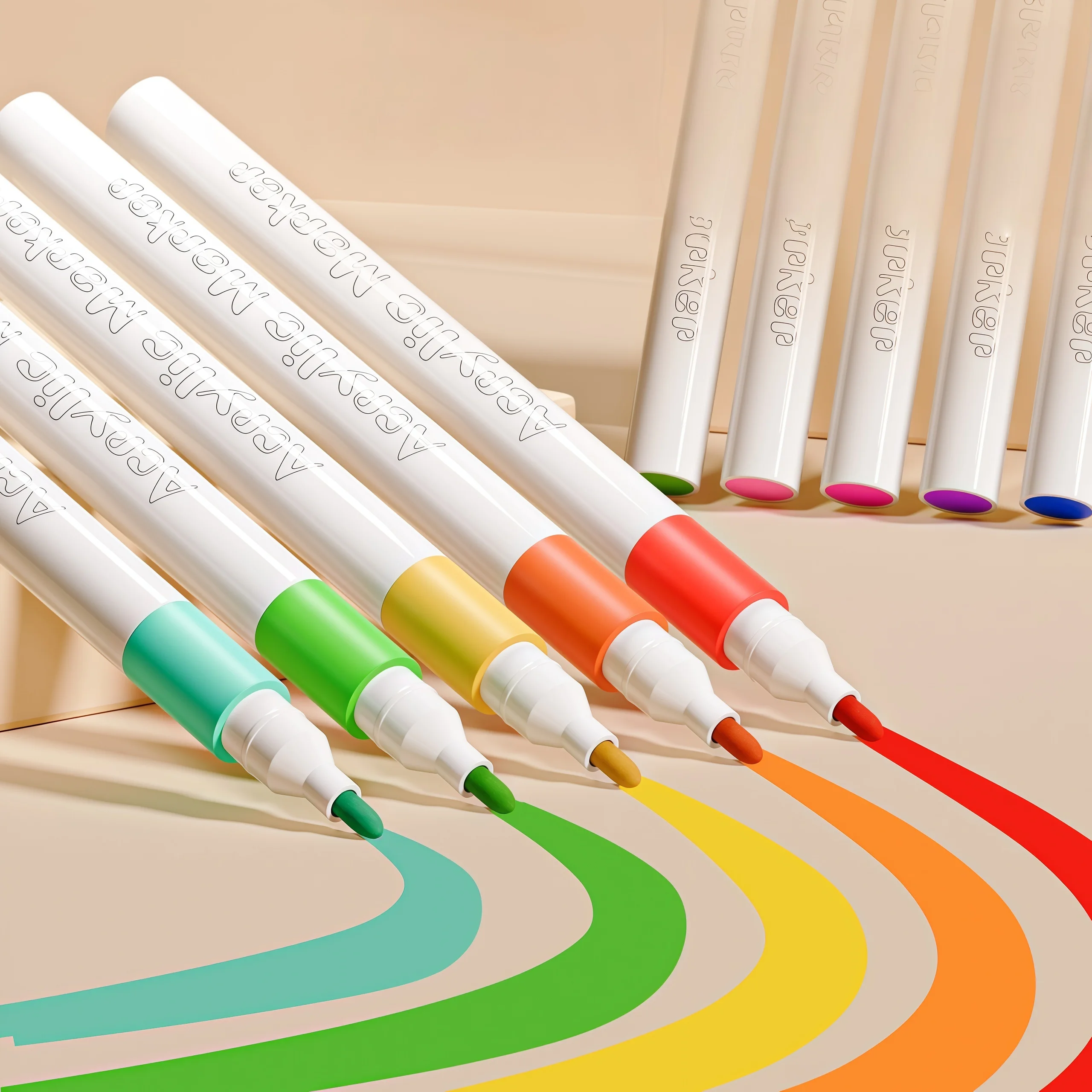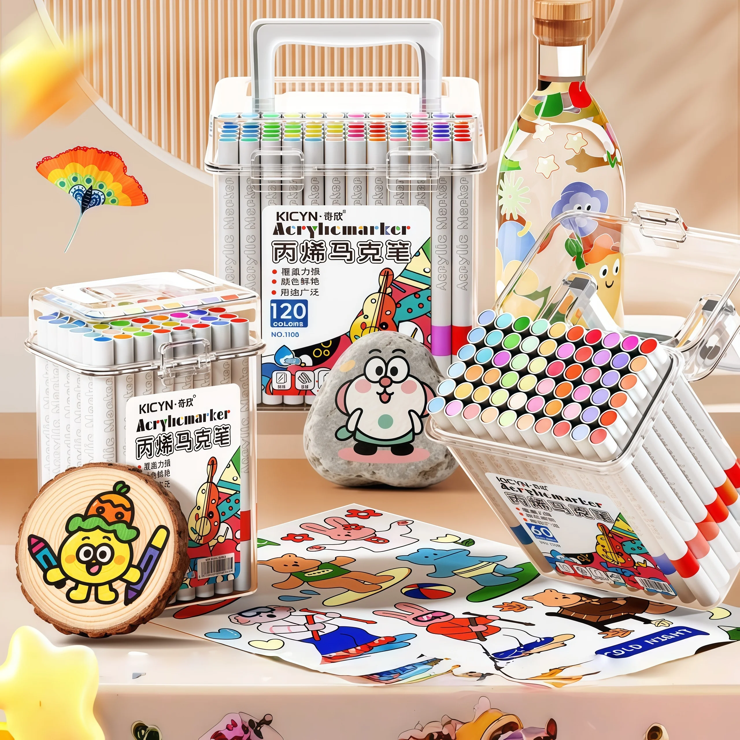 Water-Washable, Non-Bleeding, Layerable Acrylic Markers for Primary School Students - Waterproof, Bucket-Packed Colored Pens