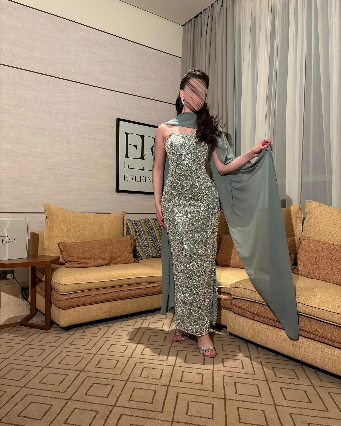 Bella Customized Mint Green Strapless Prom Dress Beaded Lace with Matching Cape Slim-Fit Floor-Length Gown robes de soirée 2025