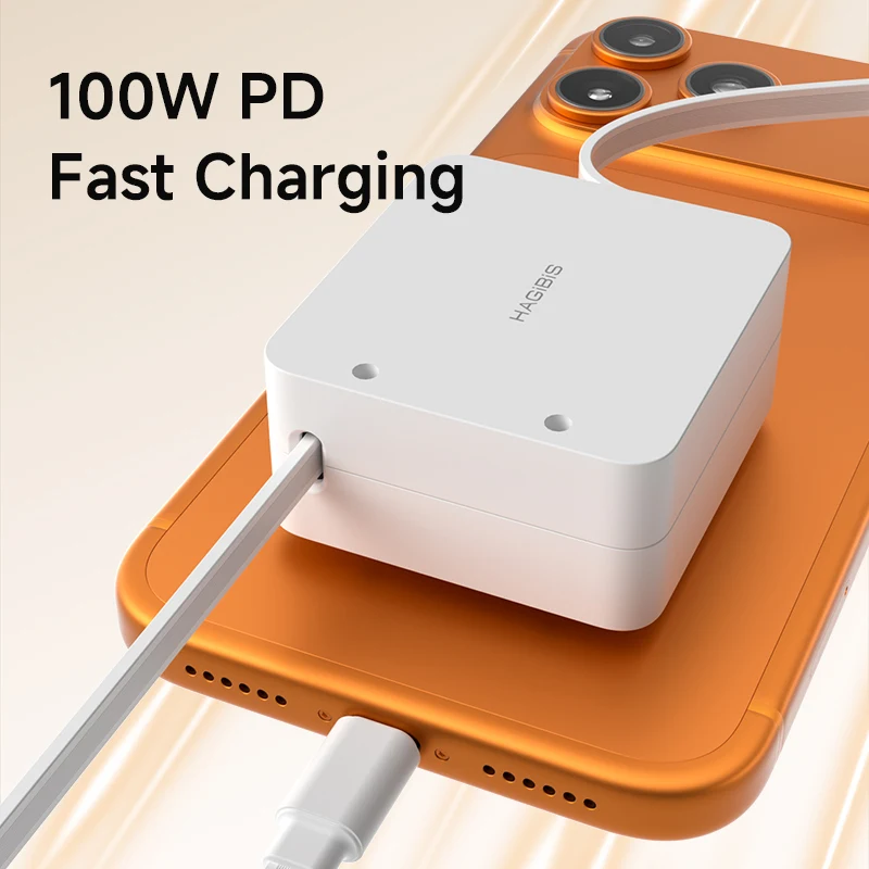 Hagibis Retractable USB C Cable 100W Type C to C Unidirectional Charger Cable Desk Fast Charging Cord for iPhone 17 Macbook iPad