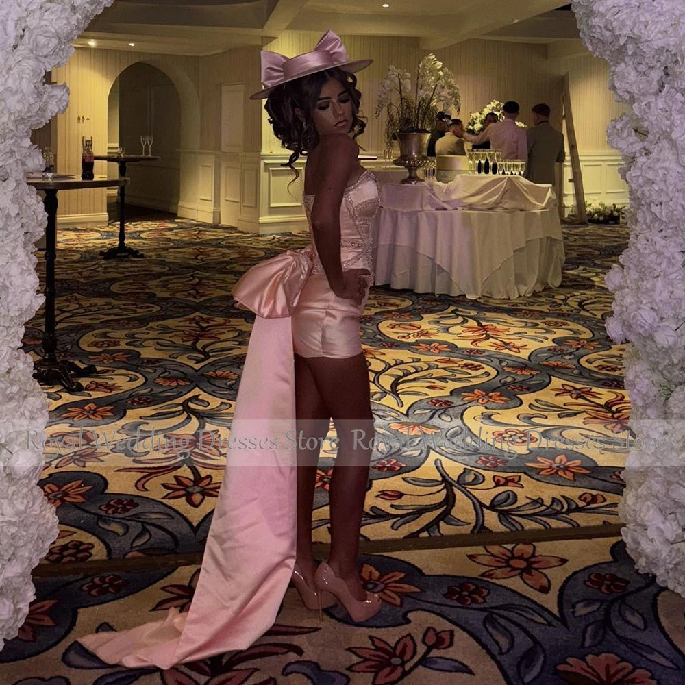 Custom Mini Short Pink Cocktail Dress Sheath Strapless Cocktail Gown For Women Beading Sleeveless Party Gown With Bow