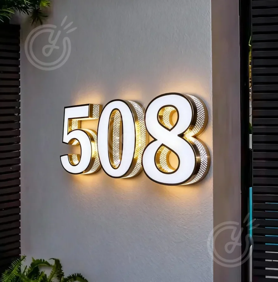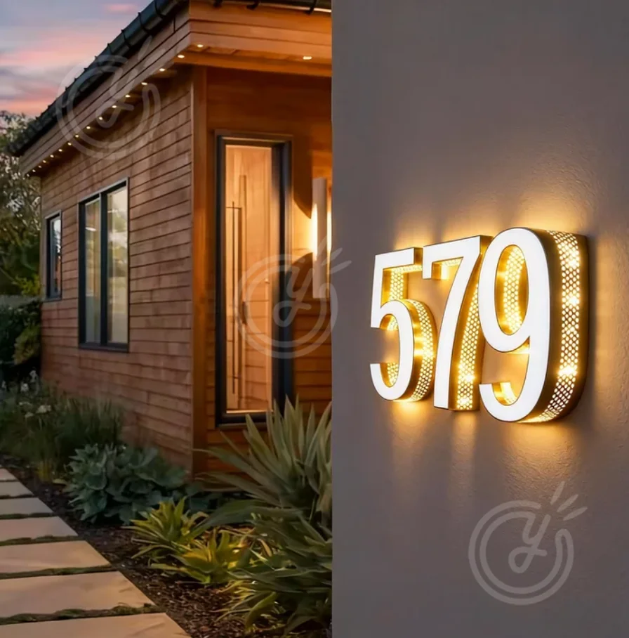 Custom Outdoor LED Signs Logo House Number 3D Lighted House Address Sign Letter Waterproof Illuminated Side Lit Number Sign