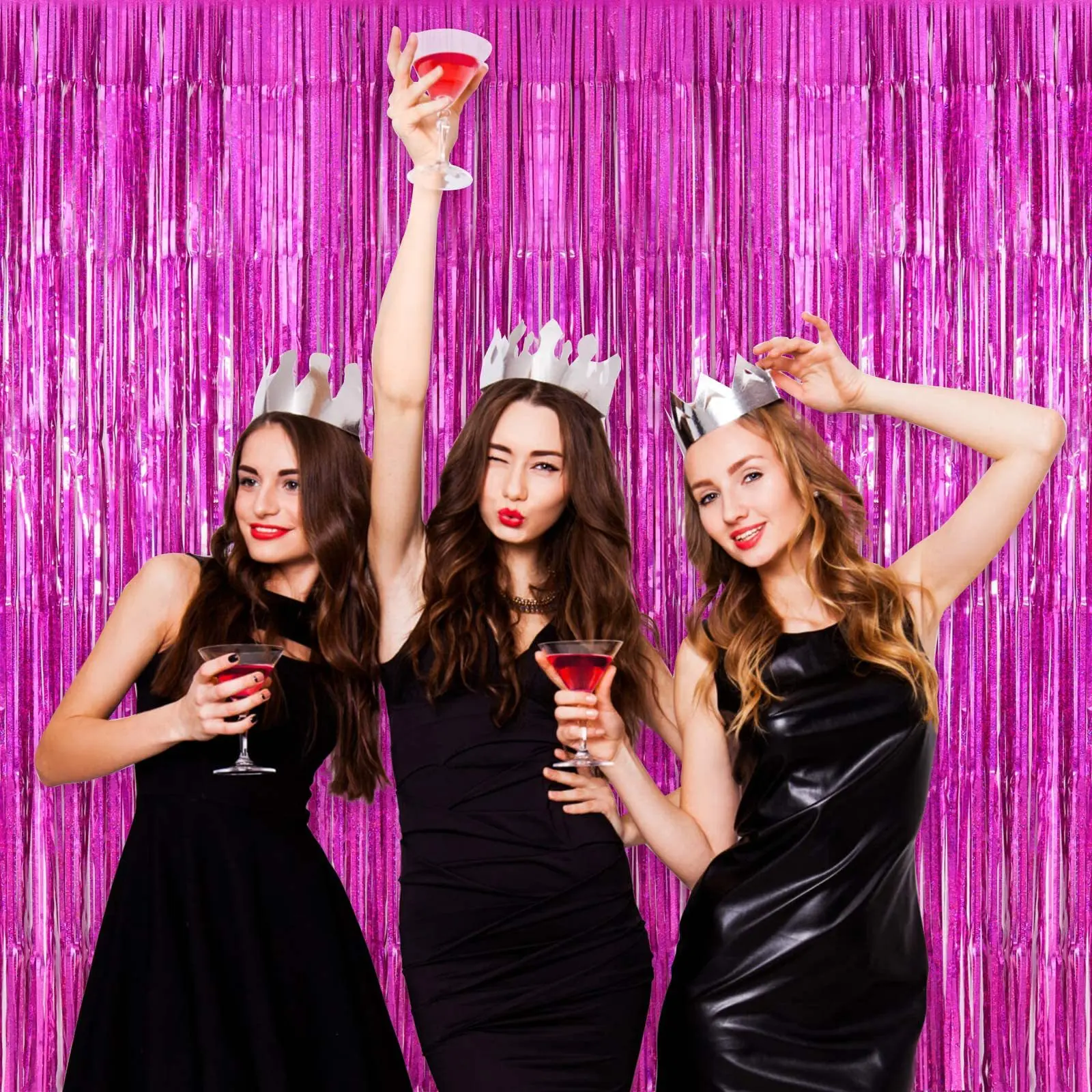 2Pcs Party Backdrop Curtains Metallic Foil Tinsel Curtain Glitter Foil Fringe Curtain Birthday Wedding Party Decoration Supplies