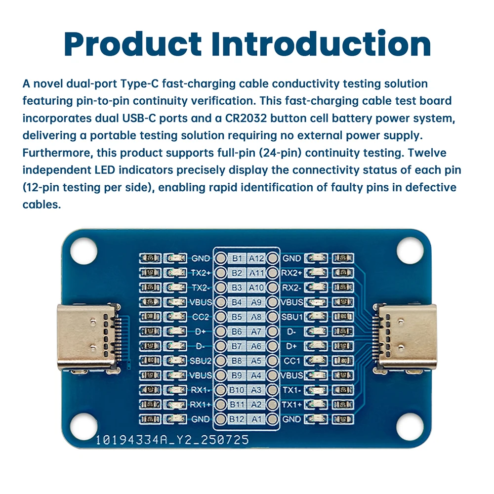 Dual-headed Type-C Fast Charging Cable Testing Module Type C to Type C Cable Testing Module Portable LED Indicator Cable Tester