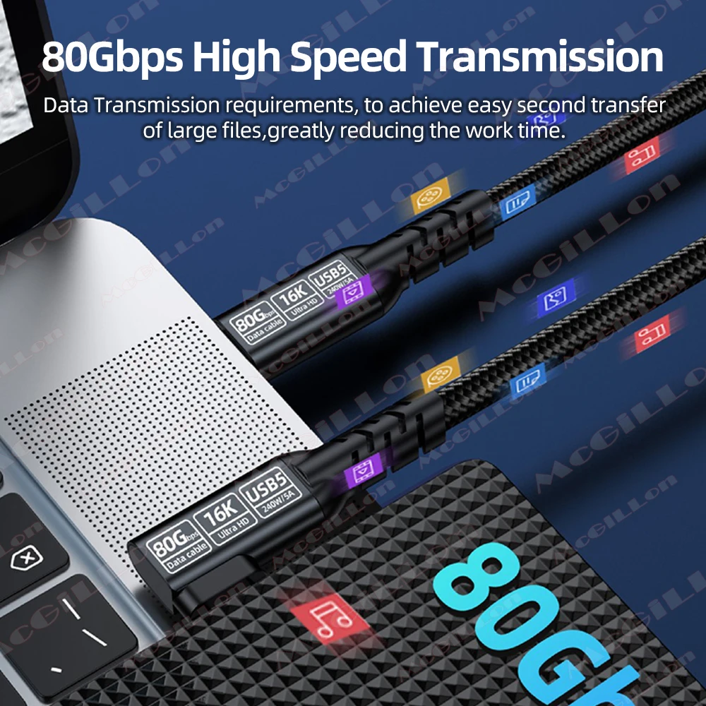 Elbow USB 5.0 Data Cable Thunderbolt 5 PD 240W 5A Charge Wire 80Gbps for MacBook Mac Pro Air SSD Tablet Laptop USB5 Type C Cord