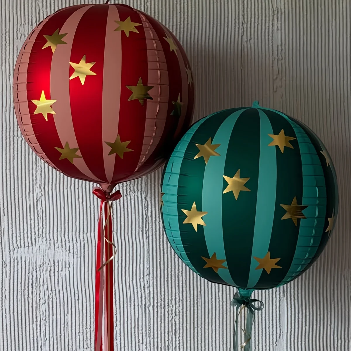 2pcs 22 Inch 4D Striped Star Aluminum Film Balloon with Red Green Spheres That Can Float in The Air for Christmas and Birthday