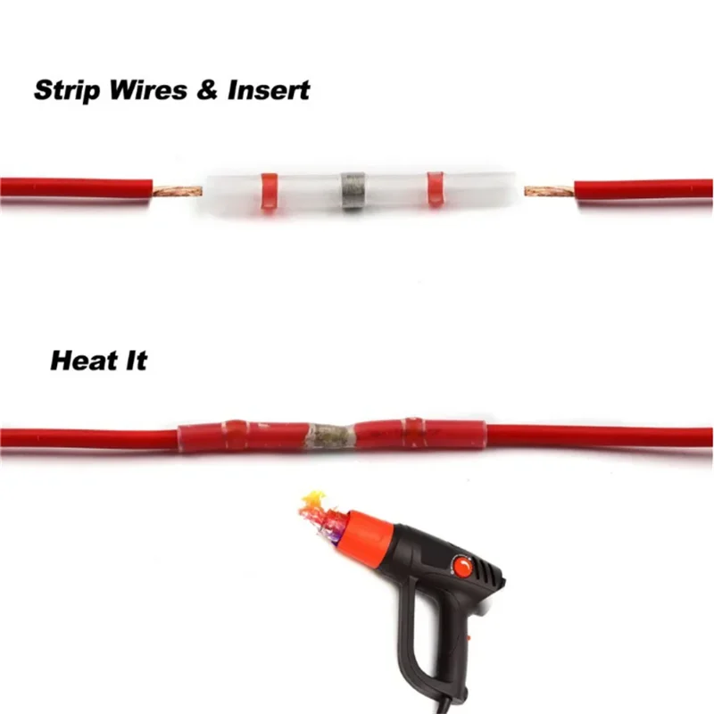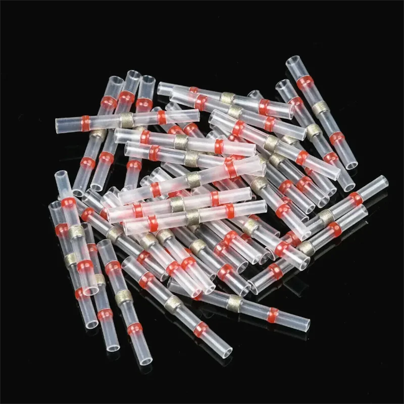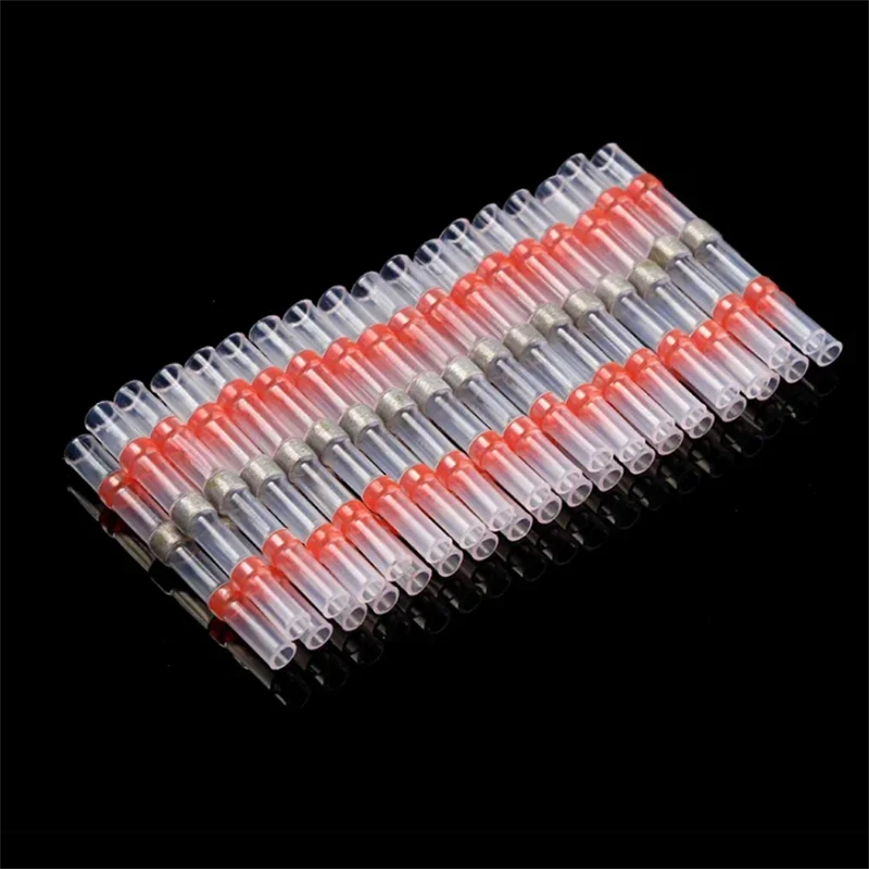 50/100/500/1000PCS Waterproof Solder Seal Sleeve Splice Terminals Copper Heat Shrink Electrical Wire Butt Connector AWG22-18 Red