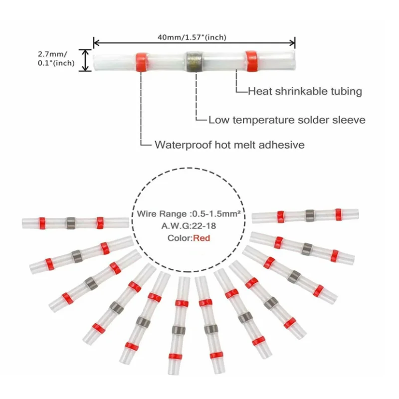 ALI shop - rezultati pretrage ... ... 50/100/500/1000PCS Waterproof Solder Seal Sleeve Splice Terminals Copper Heat Shrink Electrical Wire Butt Connector AWG22-18 Red ::: 2021 ::: :::