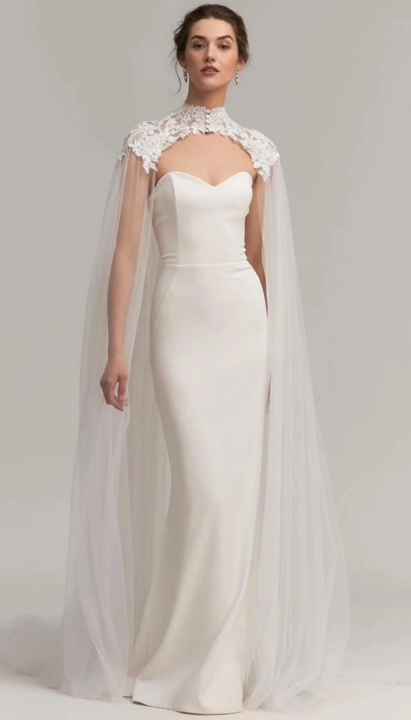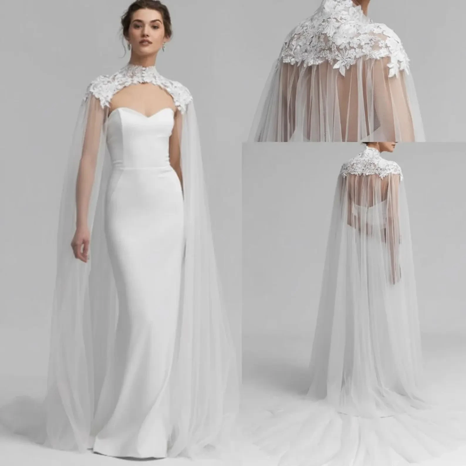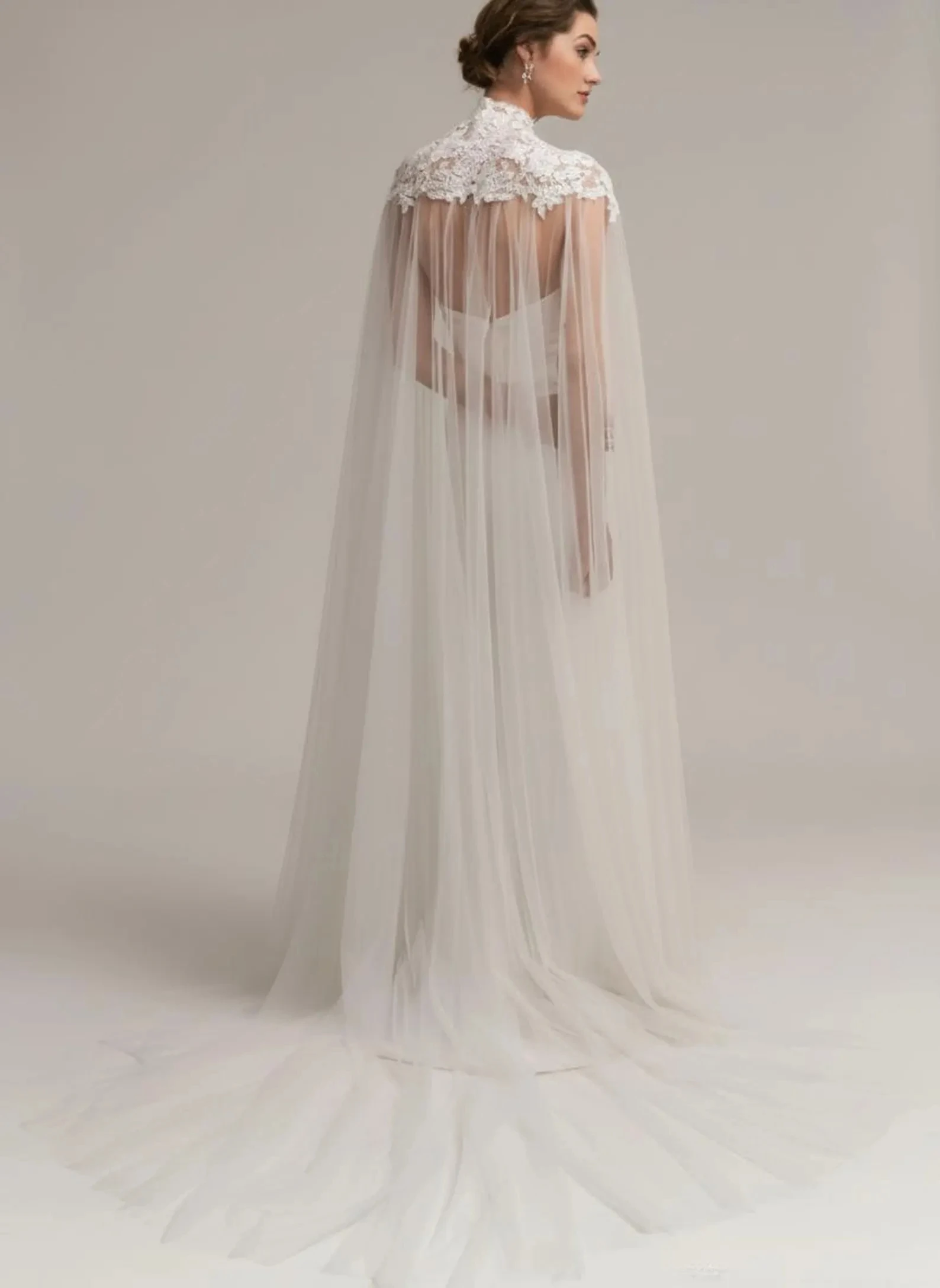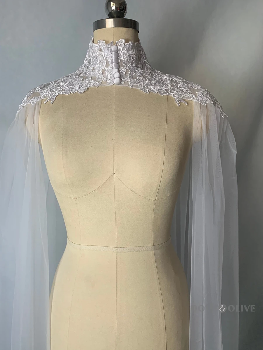 ALI shop - rezultati pretrage ... ... Cusstomized Long Lace Tulle Wedding Boleros Cloak High Neck Buttons Bride Shrugs Bridal Capes Formal Party Coat Women Accessory ::: 2021 ::: :::