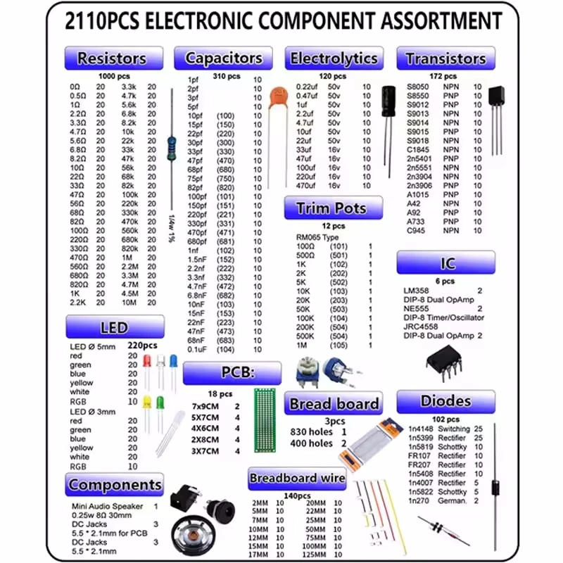 ALI shop - rezultati pretrage ... ... Electronic Component Kit including Assortment + Capacitors + Resistors + LED + Transistors + DC Jacks + PCB +opamp ::: 2021 ::: :::