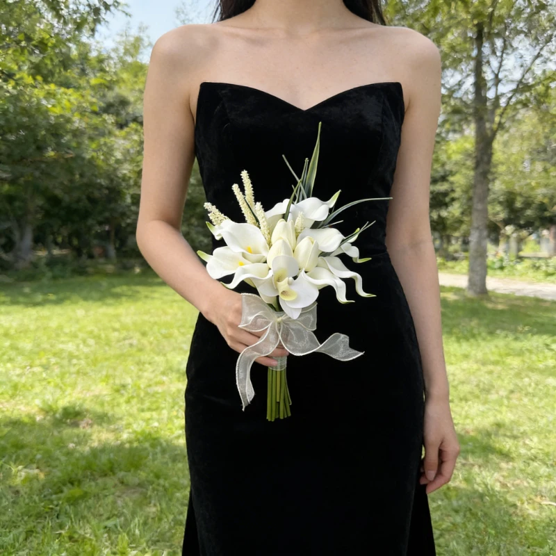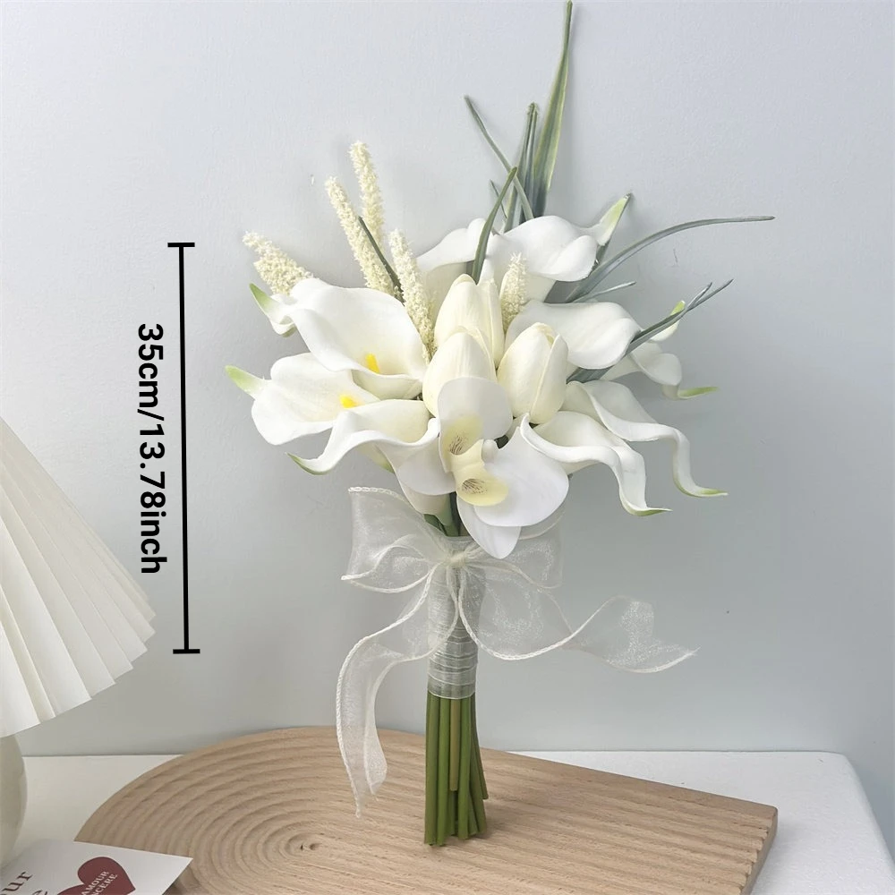 Floral Bridal Bouquet Artificial Calla Lilies Artificial Tulip Flowers, Bridesmaid Bouquet with Wedding Ceremony Festivals Decor
