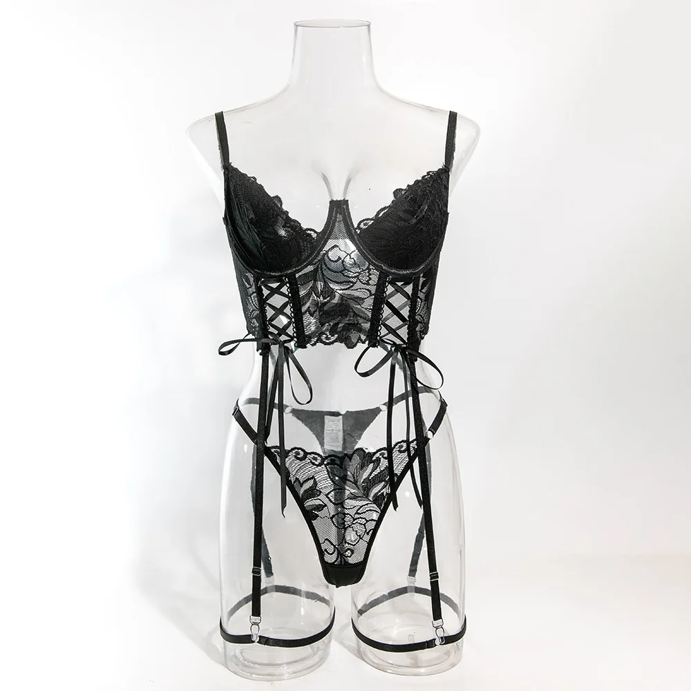 Women Lace Set Thin See Through Underwear Elegant Ladies Lingerie Bra Set Embroidery Costumes