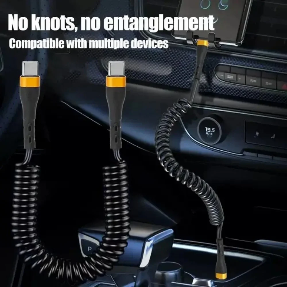 120W 6A PD Spring Charge Line USB C To Type C Fast Charging Data Cord For iPhone Samsung Xiaomi POCO Car Phones Charge Data Line