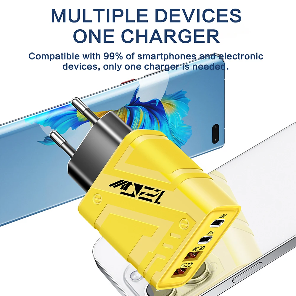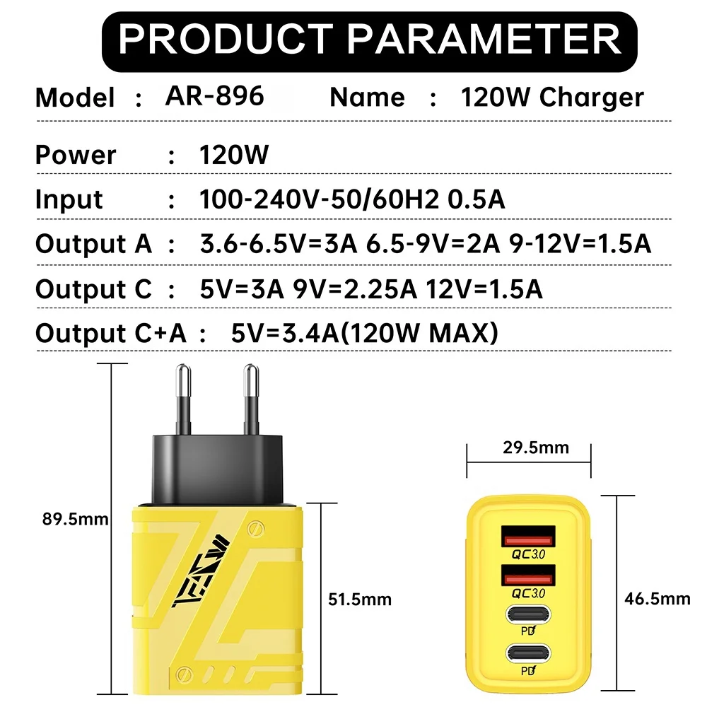 Total 120W Fast Charger 4 Ports USB Type C Quick Charge 3.0 Phone Charger Adapter For iPhone Samsung Xiaomi PD 120W C to C Cable