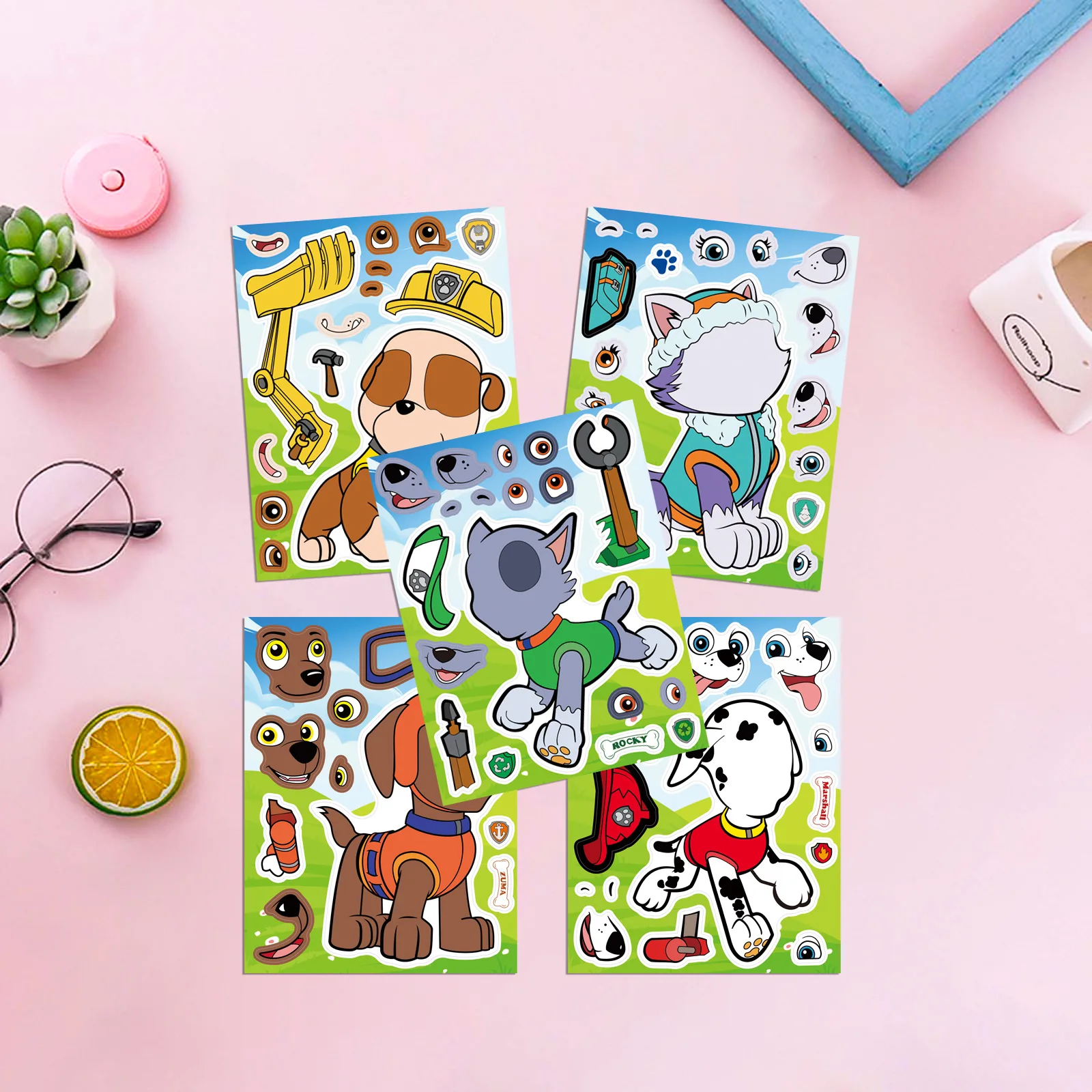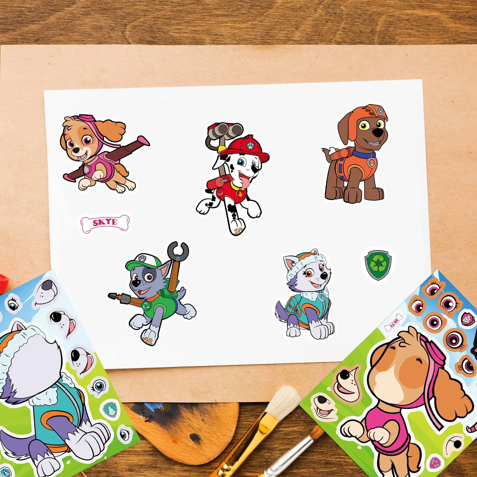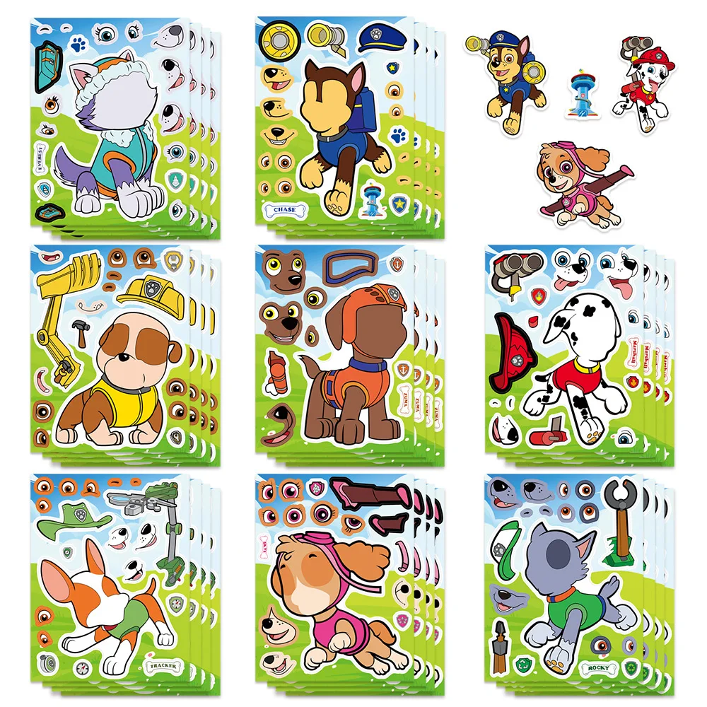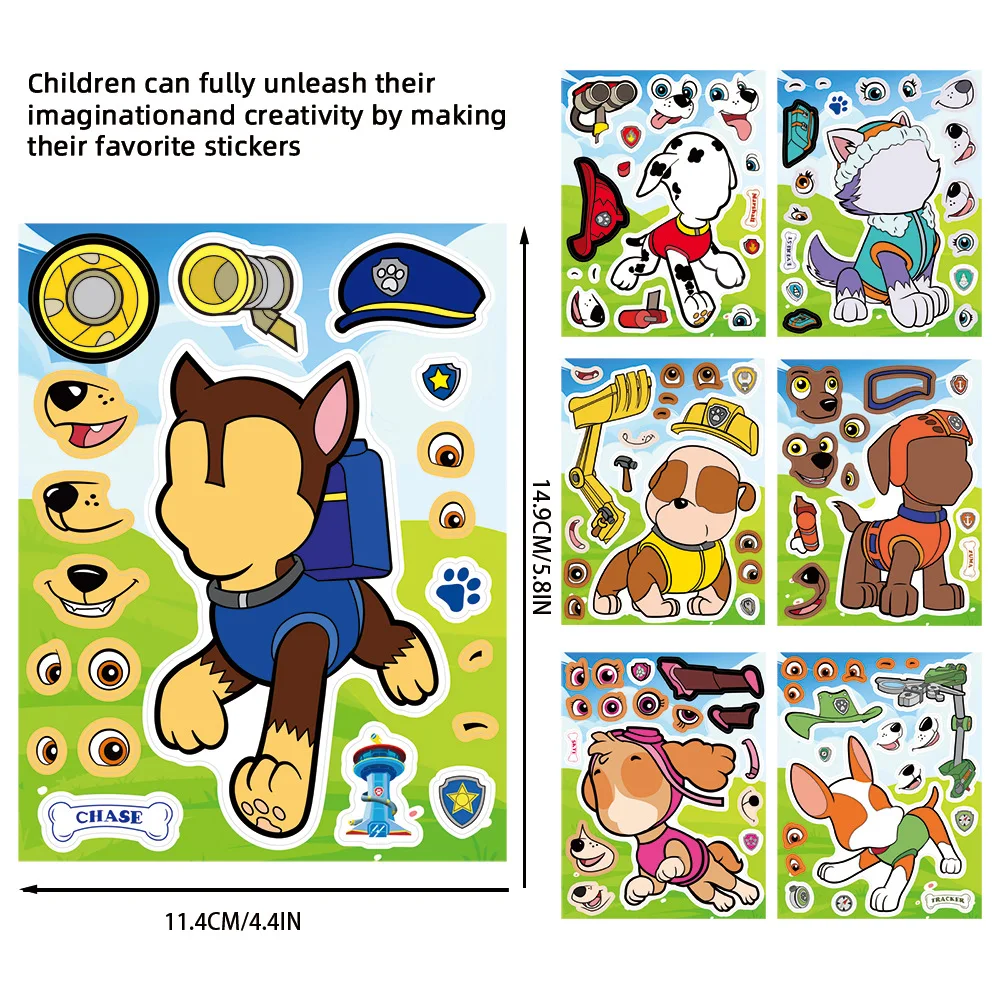 8/16Sheets Make a Face PAW Patrol Puzzle Cartoon Stickers DIY Ryder Chase Assemble Jigsaw Kids Toy Children Boys Game Party Gift