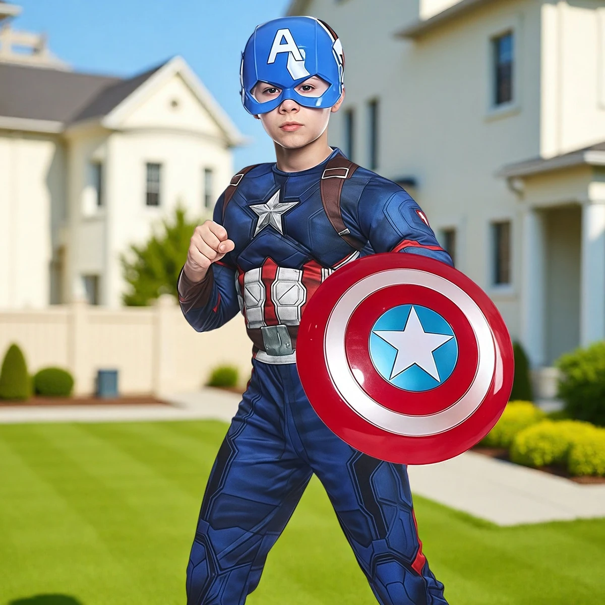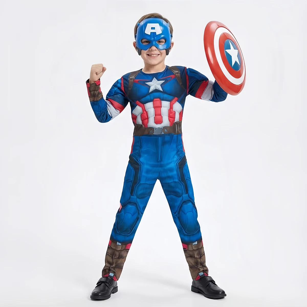 Captain America Muscle Jumpsuit Shield Cloak Mask Superhero Halloween Carnival Cosplay Costume Birthday Party Gift