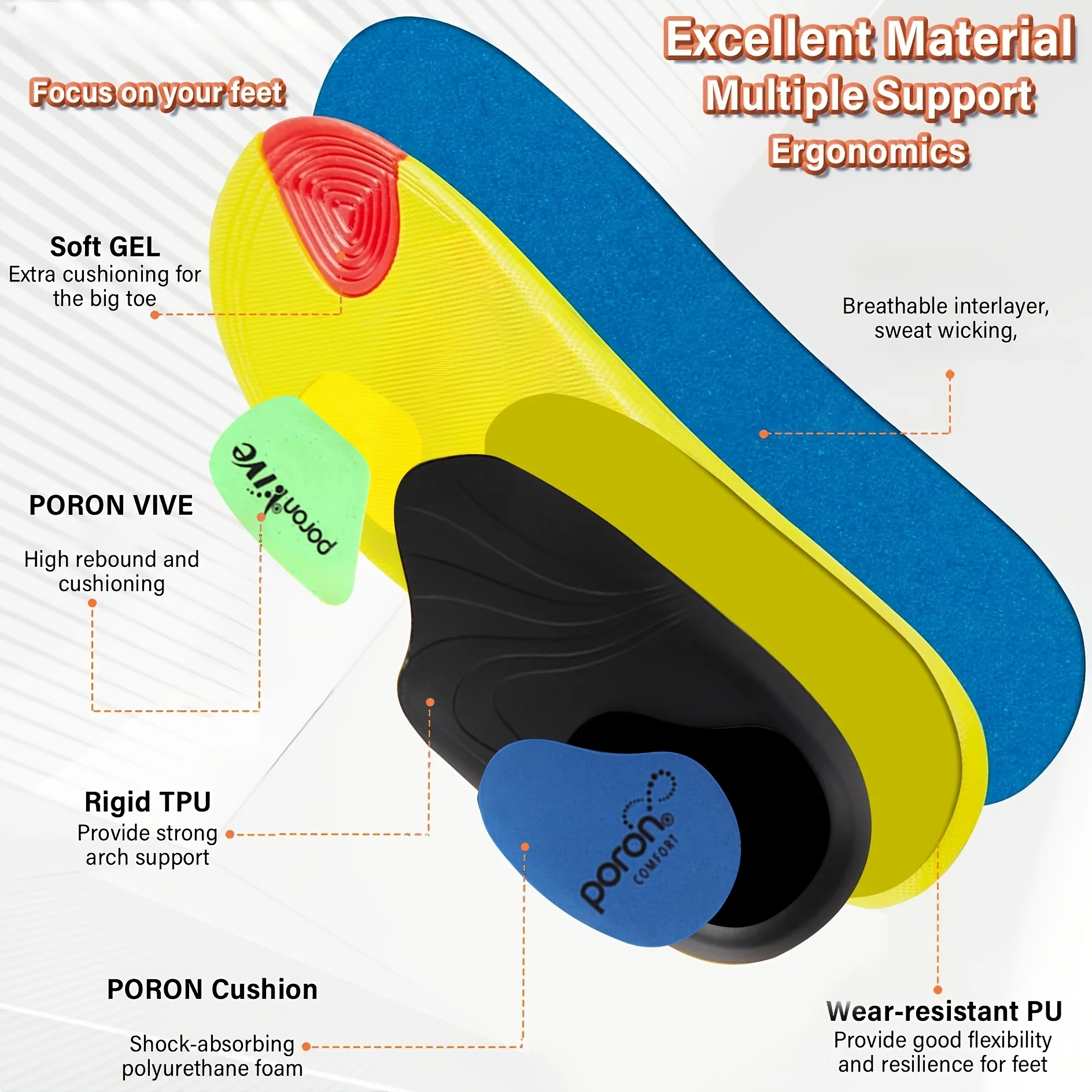 240lbs Heavy Duty Arch Support Insoles Sports Shock Absorption Elastic Wear Resistant Orthopedic Flatfoot Insoles Pain Relief