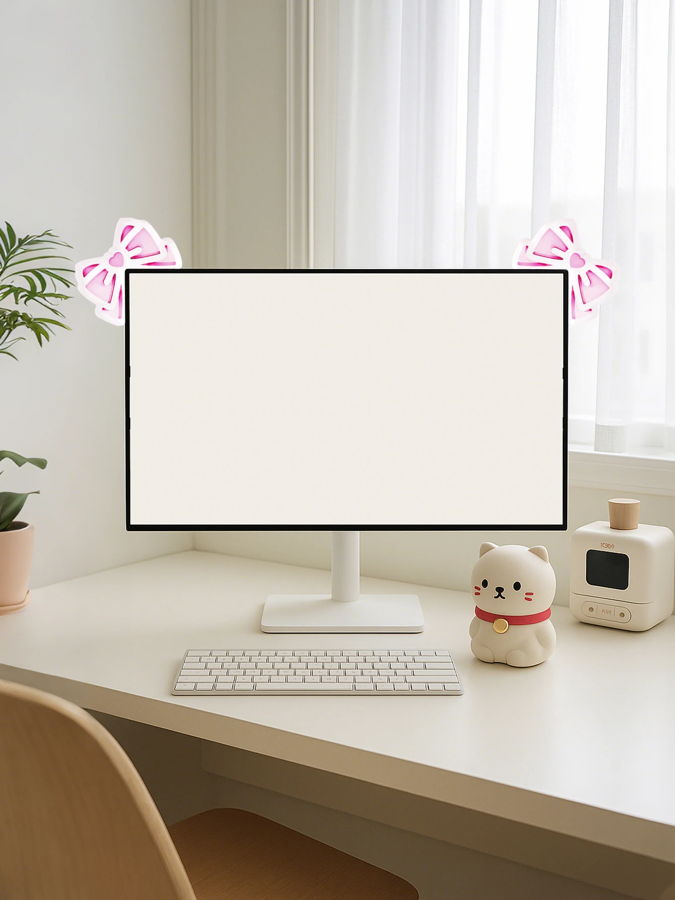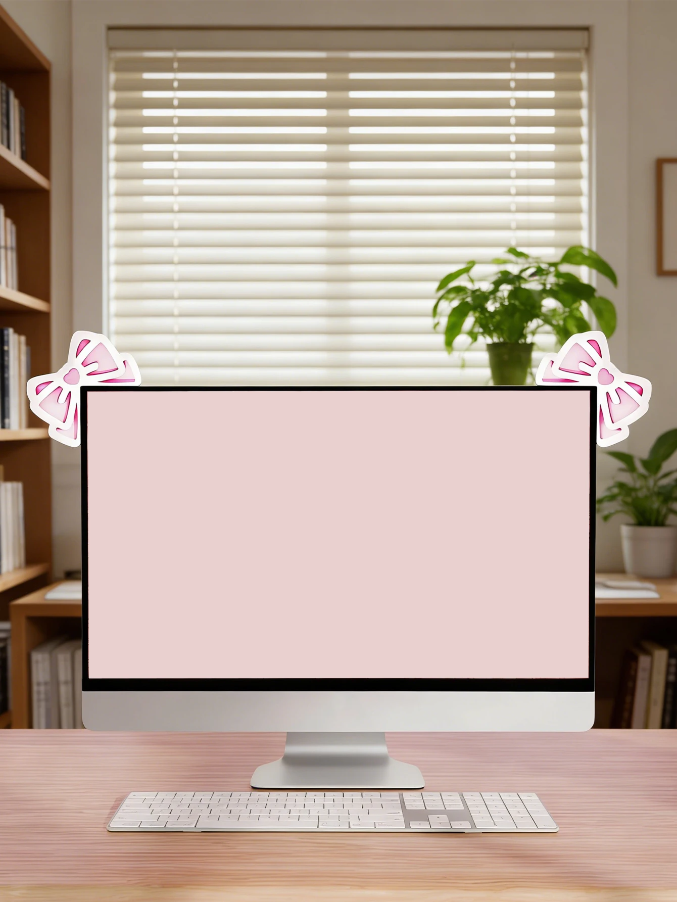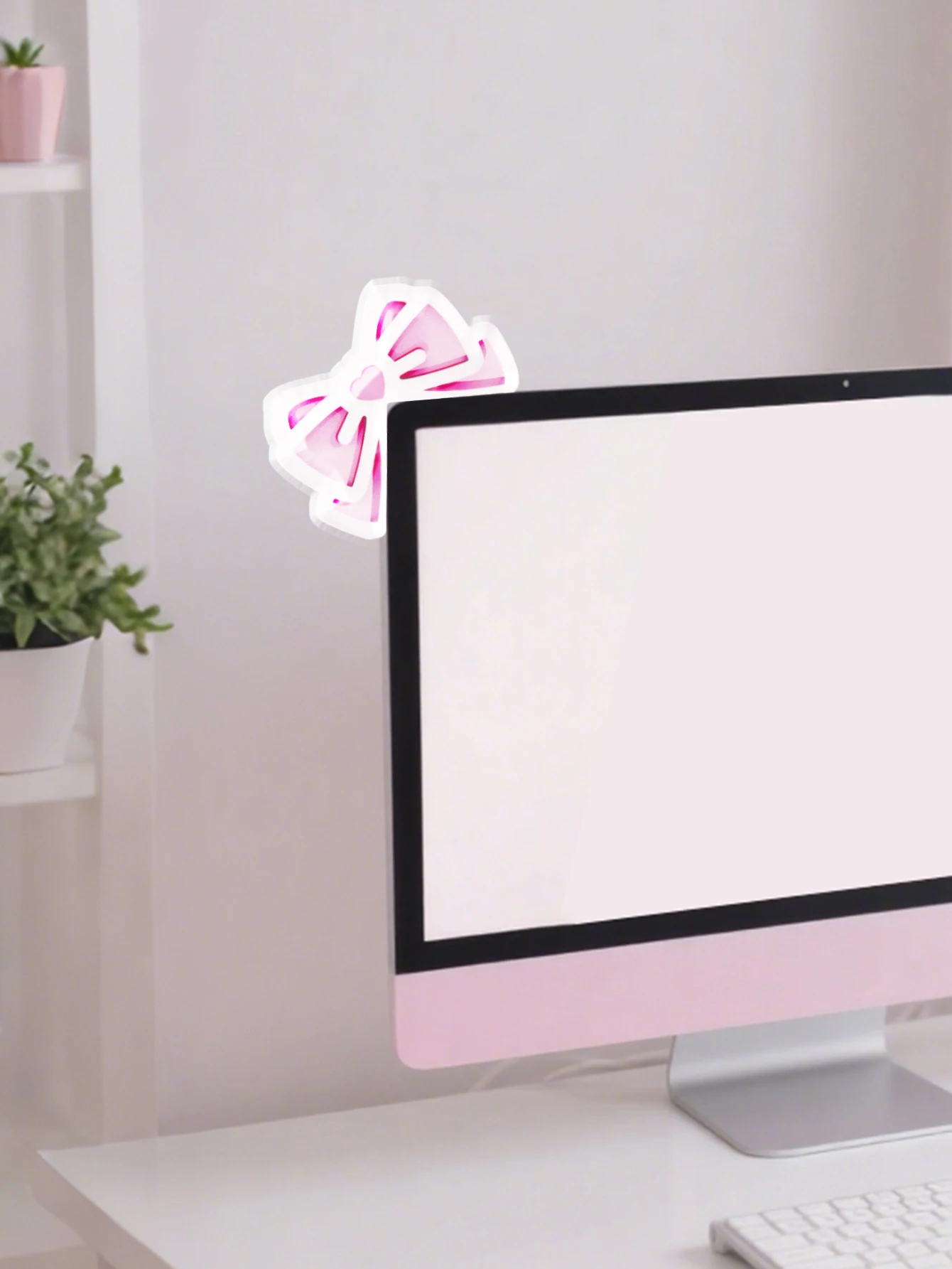 Kawaii Bow Monitor Decor Pink Acrylic Bowknot PC Accessories Cute Desktop Decoration for Gaming Setup,Screen,Home Office & Gift