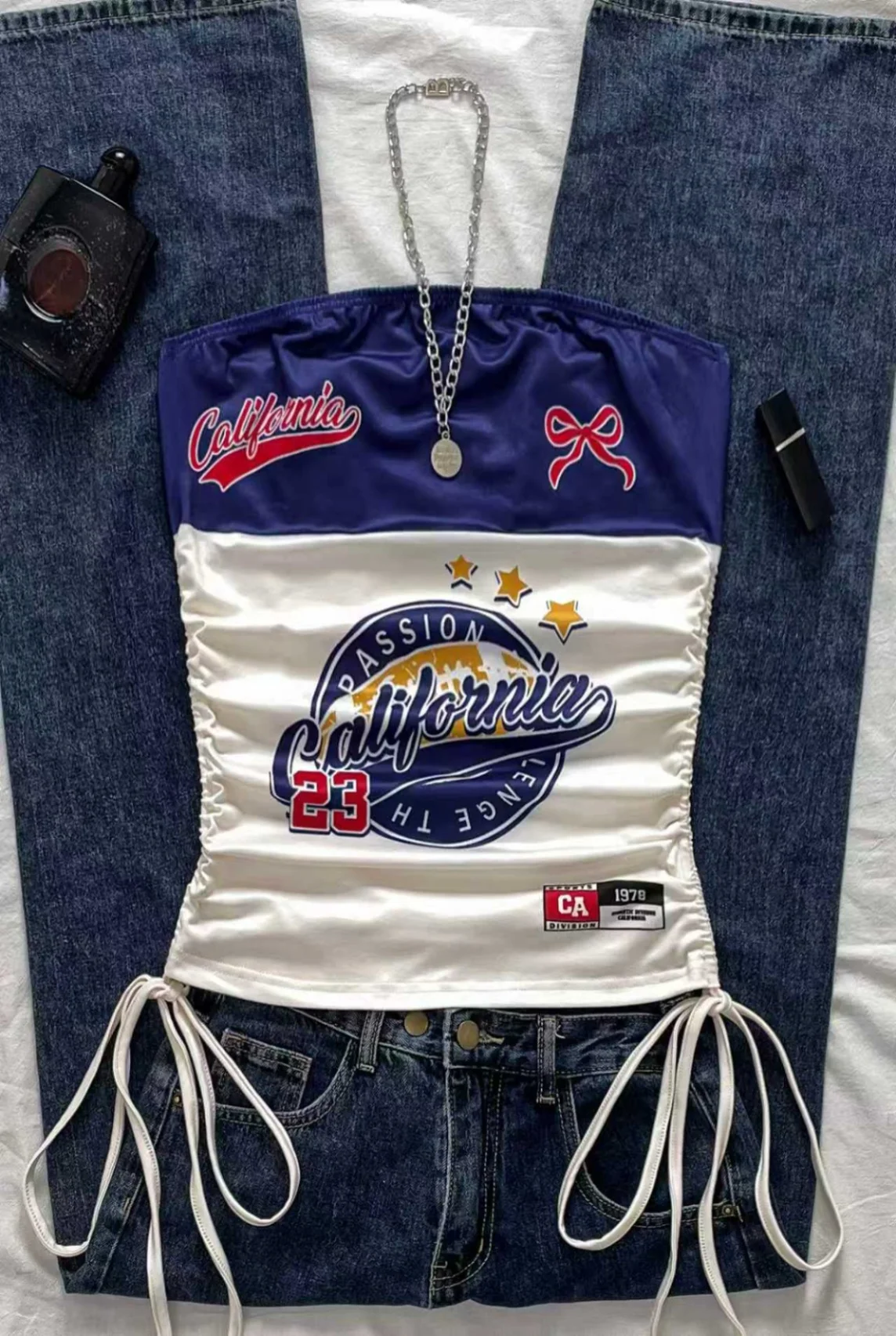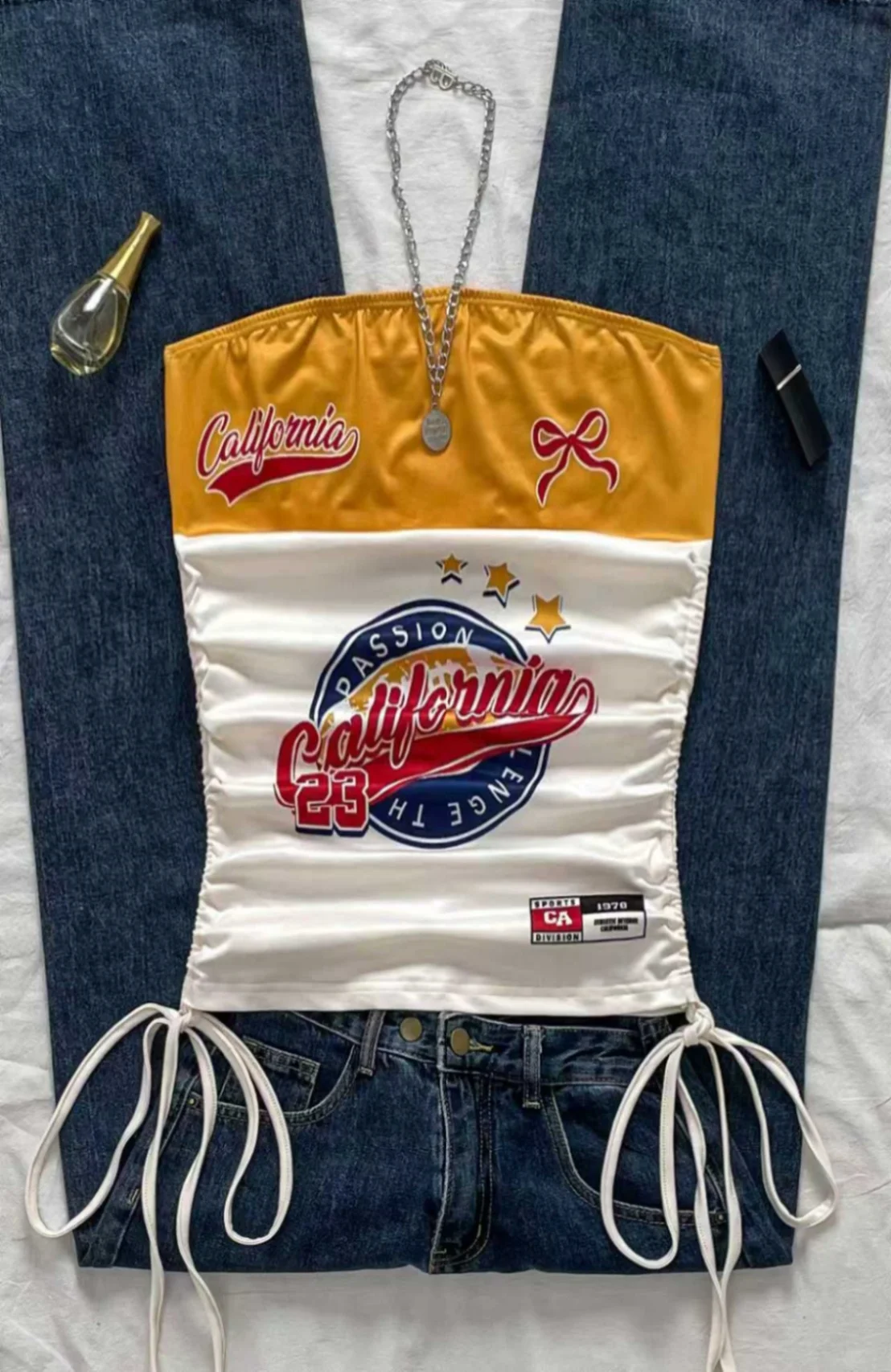 aliexpress , ali , shop , ali shop , online , prodavnica , online shop , online prodavnica , kupujem , prodajem , Women's casual retro drawstring front cut vest, suitable for Y2K and guitar prints in spring and summer