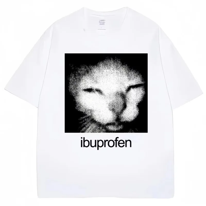 aliexpress , ali , shop , ali shop , online , prodavnica , online shop , online prodavnica , kupujem , prodajem , 2025 Vintage Funny Ibuprofen Cat Meme Graphic T Shirt Men Women Humor Fashion T Shirts Oversized Casual Streetwear T-shirts