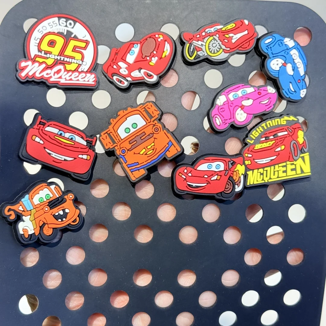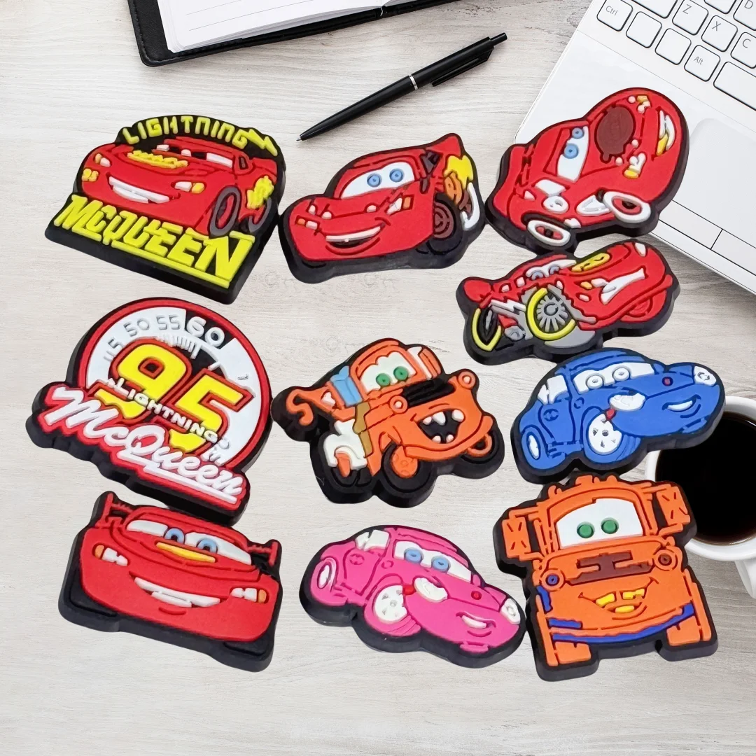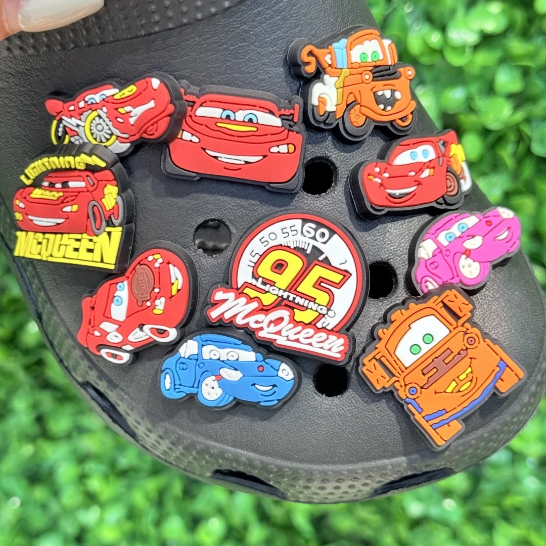 10-100Pcs Cartoon Cars Lightning McQueen PVC Kid Shoe Buckle Charms Clog DIY Bracelet Sandals Shoes Decoration Party Gift