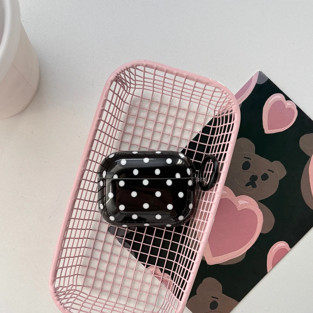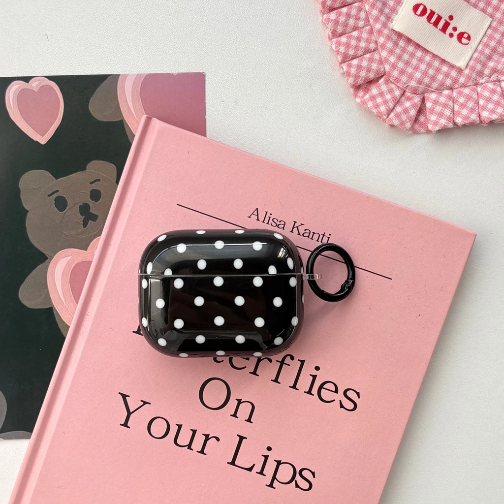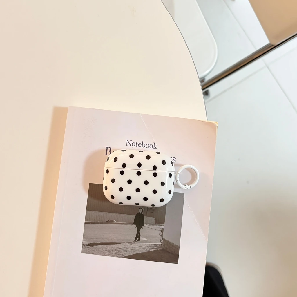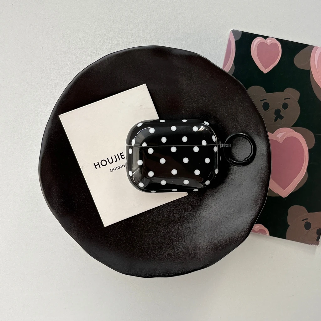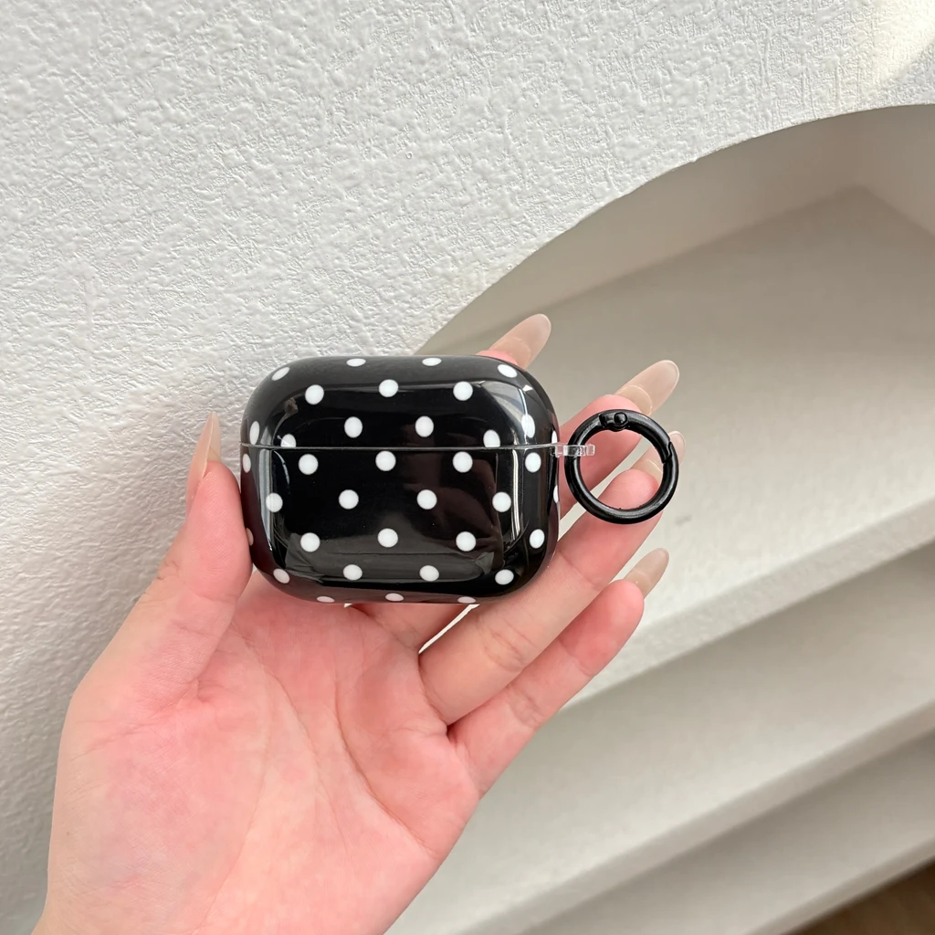 Fresh Simple Black Background White Wave Point With Hook Shock Proof Earphone Cover Case for AirPods 1 or 2 3 4 Pro 2 Pro 3