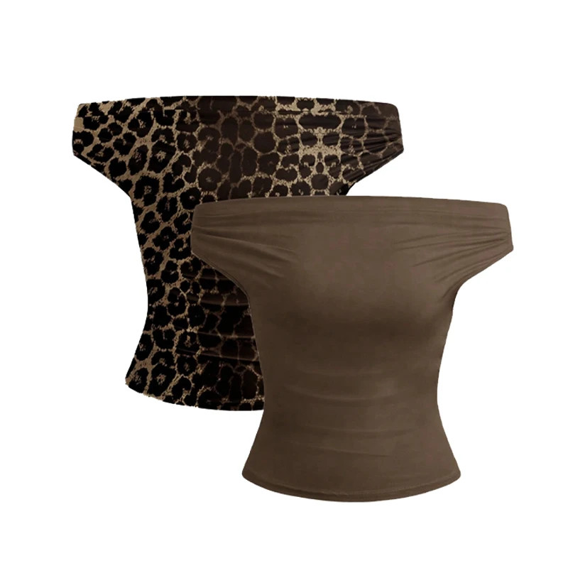 2 Piece Set Pleated Asymmetric Crop Top Woman T-shirts Strapless Top Female Sleeveless Tops Womens Cloth Fashion Streetwear