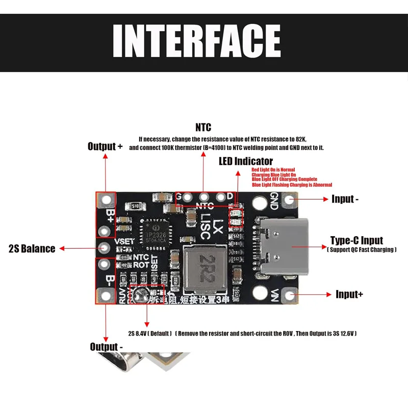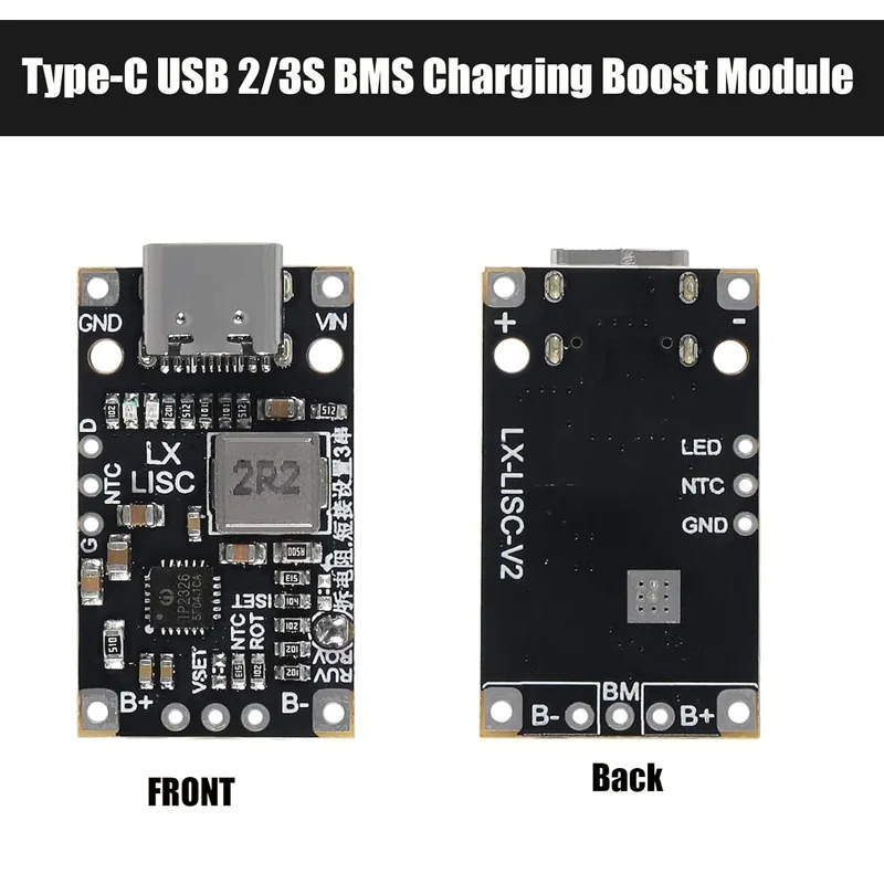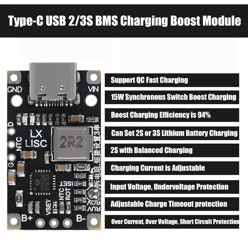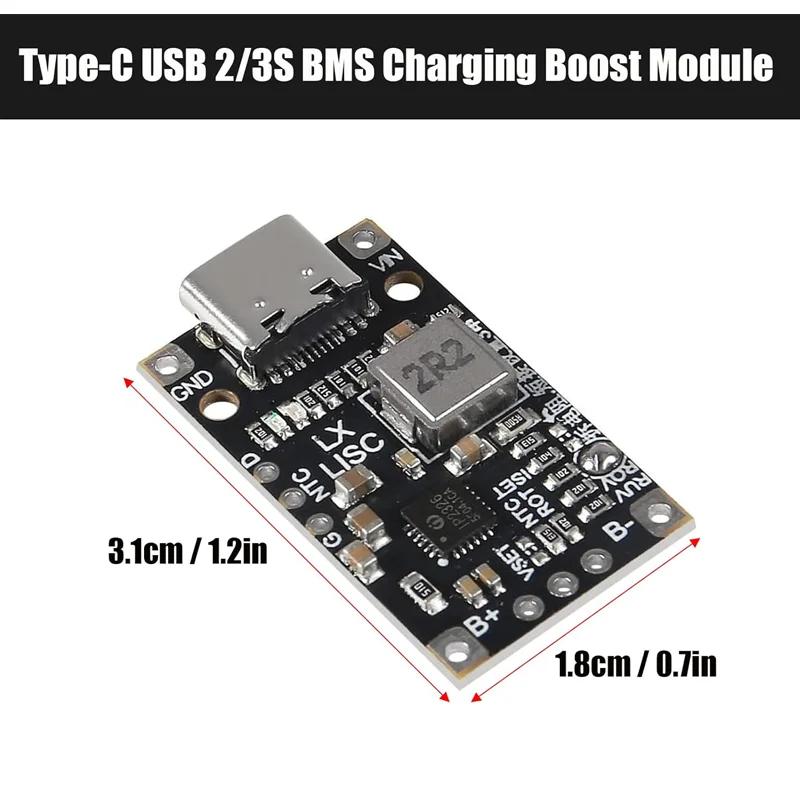 Type-C USB 2/3S BMS 15W 8.4V 12.6V 1.5A Boost Power Supply Module Support Fast Charge with Indicator Lithium Battery Charging