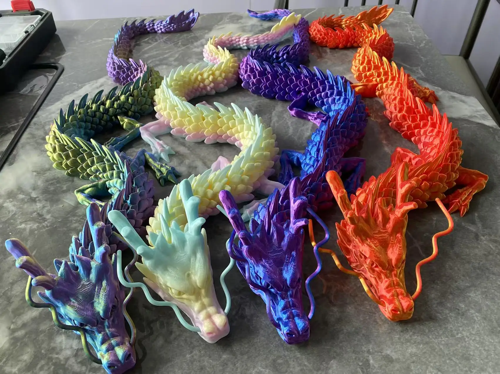60cm 3D Printing Dragon Toy Chinese Dragon Joint Rotated Colorful Handicrafts Desktop Ornaments Children's Decoration Gift Toys