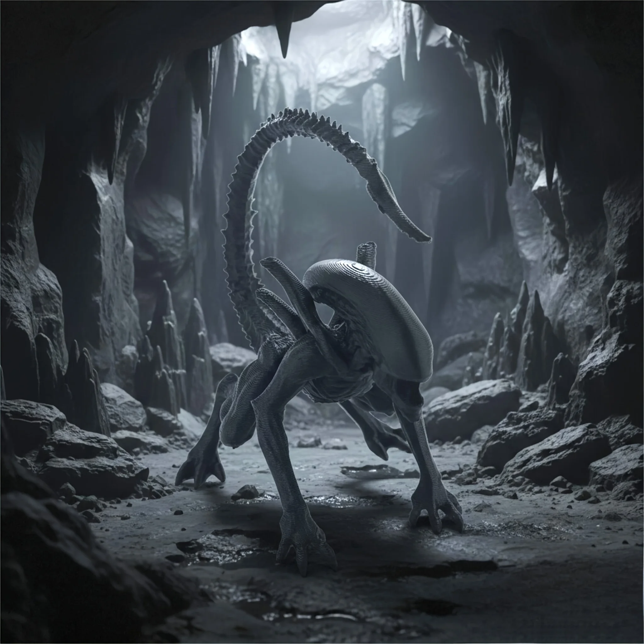 A sci-fi style black alien modeling ornaments, desktop decoration by hand, sci-fi enthusiasts collection decoration
