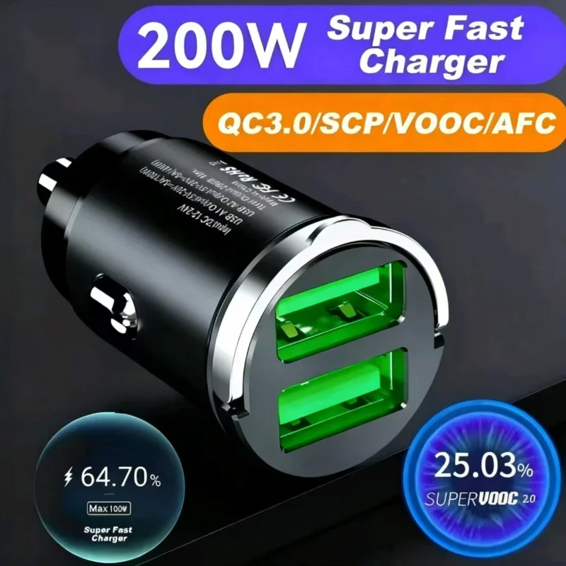 100W/200W QC3.0 PD Mini Car Charger 12-24V Lighter Fast Charging Car USB Type C Charger for Xiaomi Samsung Huawei iPhone Power