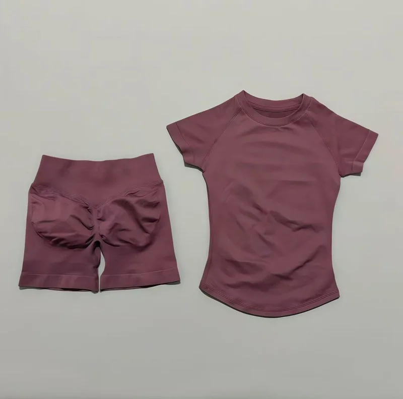 2 Pcs HISTELLO Impact Gym Sets Short Sleeve Seamless Yoga Clothing Fitness Set Women Workout Running Sports Short Leggings Suit