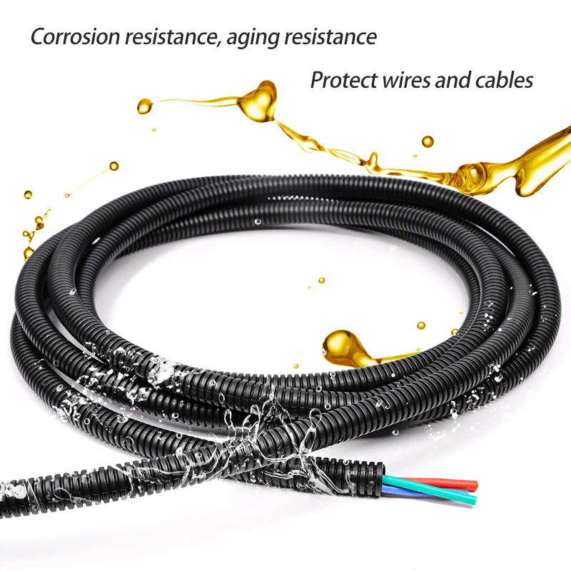 3/5/10m PP Insulated Corrugated Pipe AD 7.5 ~ 34.5mm Wire Harness Threaded Hose Plastic Auto Mechanical Line Protection Sleeving