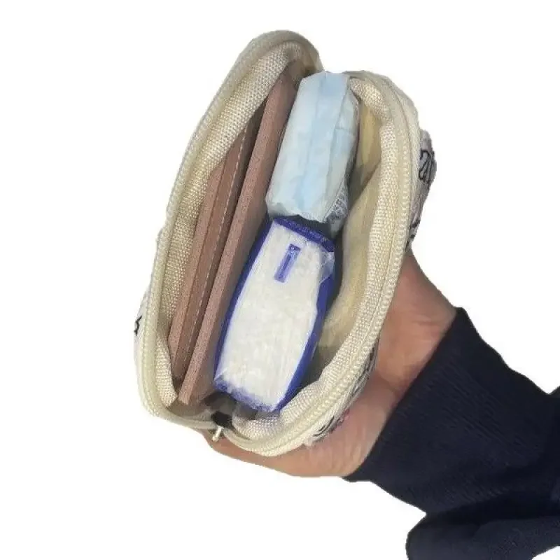 New Cute Sanrio Soft Cotton Embroidered Bow Zipper Women's Makeup Bag Cat Card Bag, Earphone Bag, Key Bag, CCD Storage Bag