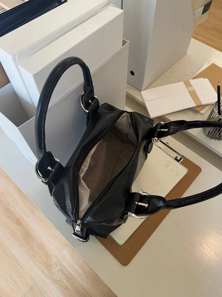 Fashion rivet women Shoulder Bag PU leather Hot girl motorcycle bag bolsa feminina female Underarm Bag ladies big handbag Black
