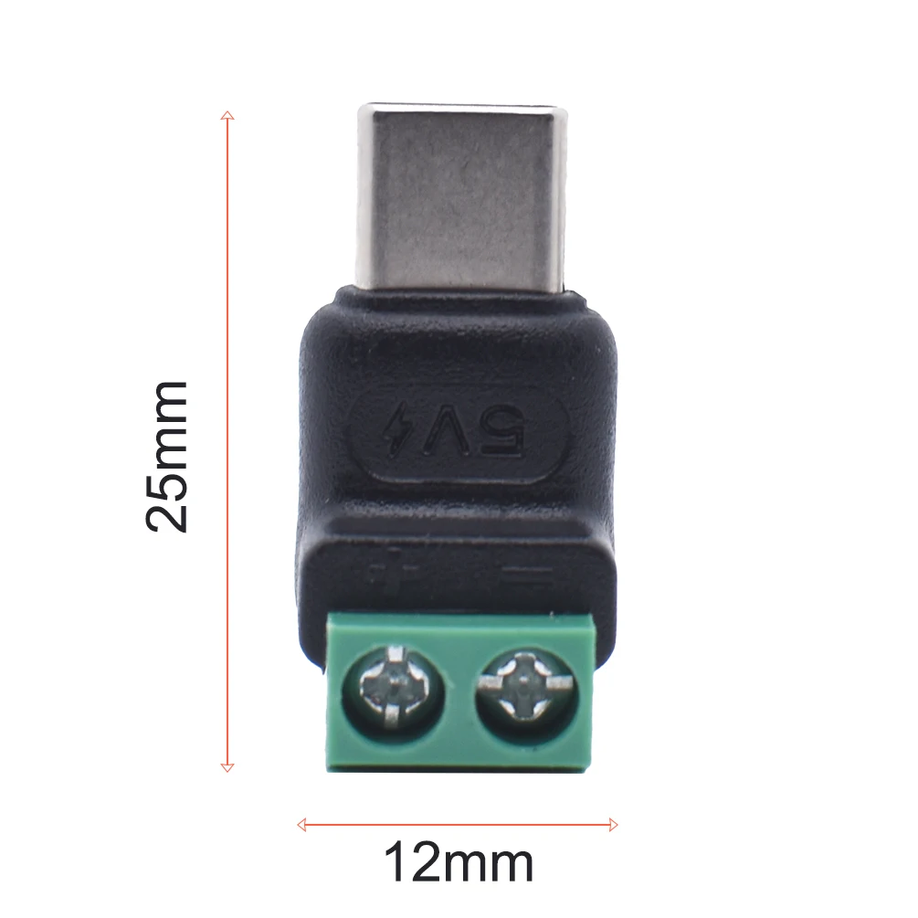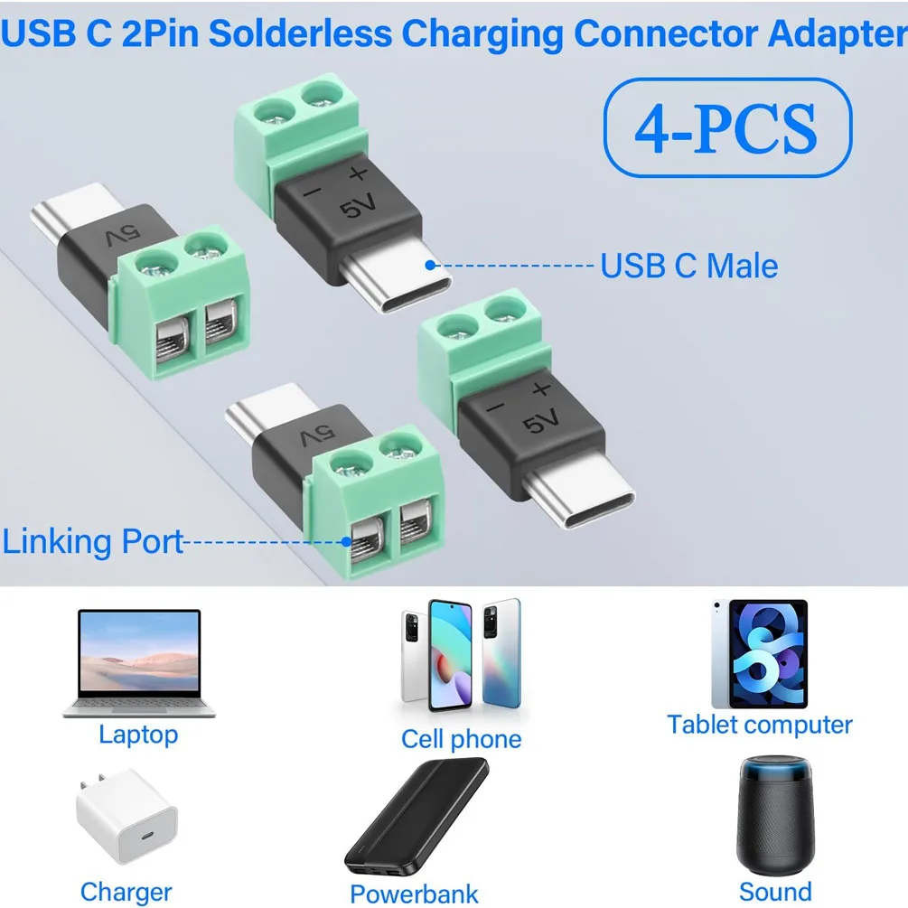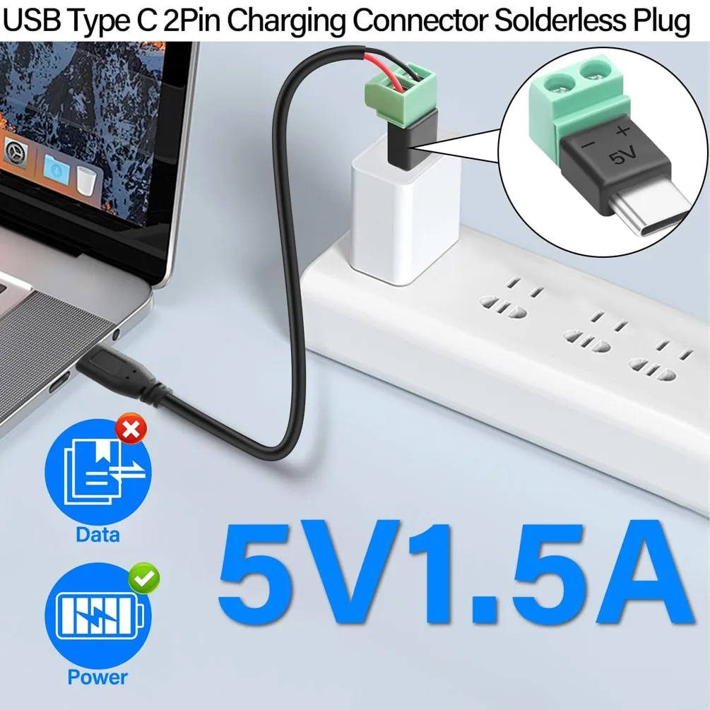 5PCS TypeC to 2 Pin Adapter No Solder Quick Connect Green Terminal for Charging Cable Phone Power Bank DIY Electronics Connector