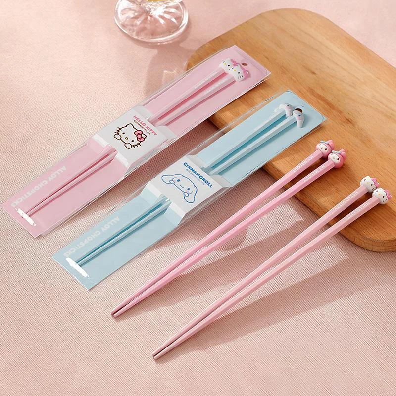 Sanrio Hello Kitty Melody Cinnamoroll Alloy Chopsticks Kt Cat New Meal-Sharing Special Non-Slip Couple Style Chopsticks Gifts