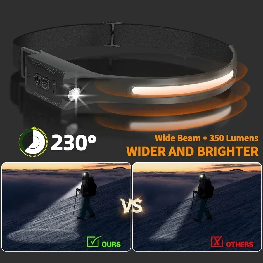 LED HeadlampRechargeable 3-modes Lighting Headlight Flashlight Built in Battery Running Light for Outdoor Camping Emergency Lamp