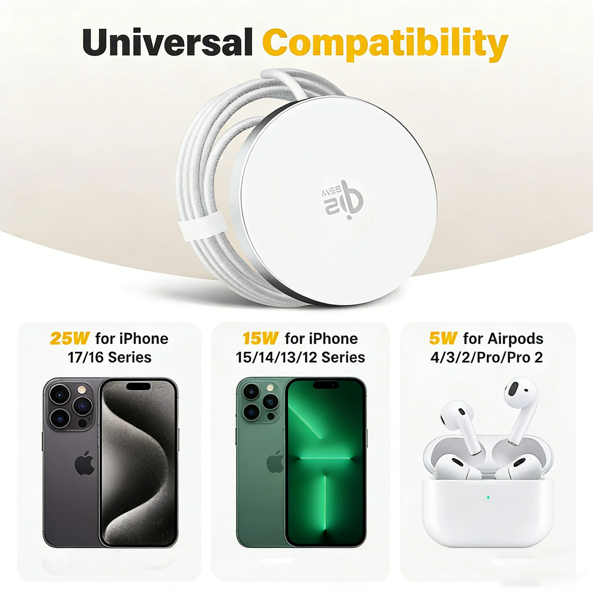 TIMESS QI2 25W Fast Wireless Charger For IPhone 17 16 15 14 13 12PRO MAX For Airpods 4 3 2 Pro 2-IN-1 Charging Station Stand Pad